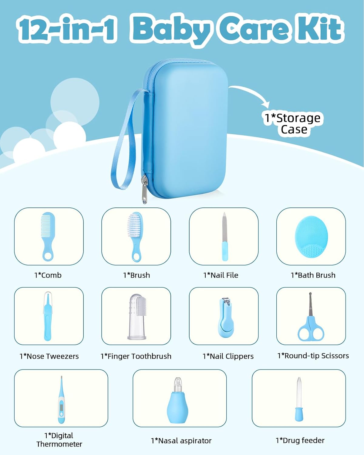 Baby Healthcare and Grooming Kit, Lictin 12PCS Nursery Care Kit, Newborn Safety Health Care Set with Hair Brush,Comb,Nail Clippers and More for Newborn Infant Toddlers Baby Boys