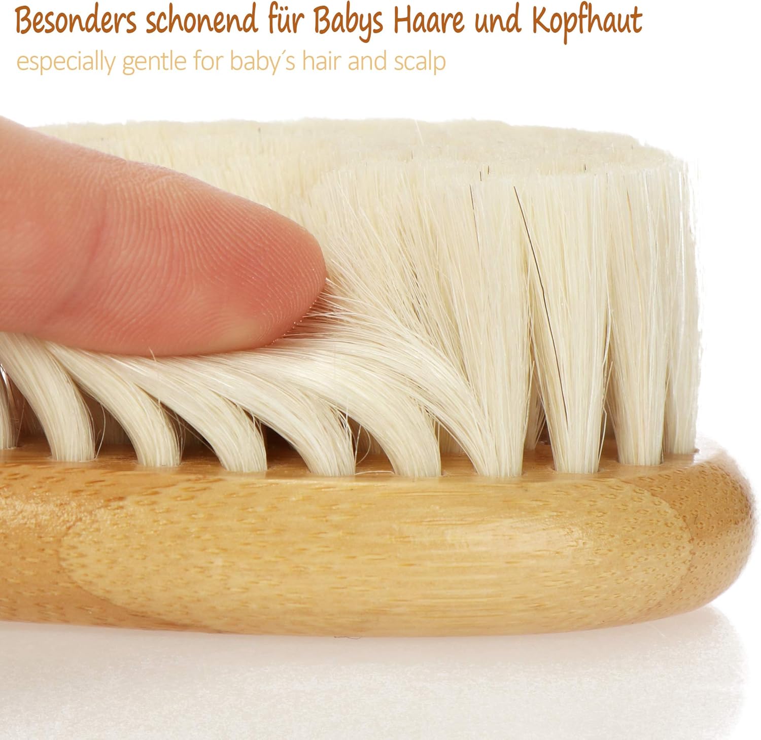 Baby brush and baby comb from 0 months for newborns and toddlers – Baby hair brush made of bamboo with soft sheep’s wool