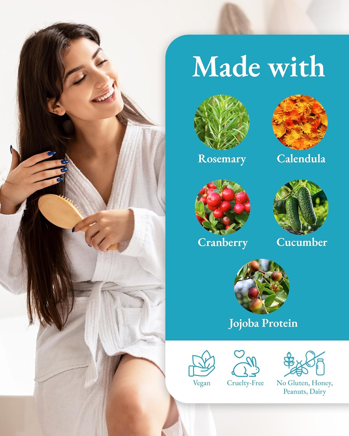 Made with Moisturising Botanicals: Let the gentle blend of Calendula, rosemary and cranberry in this detangle spray care for your hair. Combined with the cooling essence of cucumber and the strengthening benefits of jojoba protein, it leaves your hair strong and revitalised.