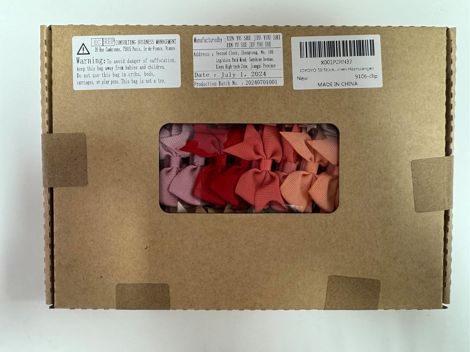JOYOYO 50 Pcs Baby Hair Clips Small Size 2 Inch Bow Clips for Baby Girl Toddlers Non-Slip Baby Clips Full Ribbon Covered Baby Care Clips Craft Bows, Baby Girl Hair Clips