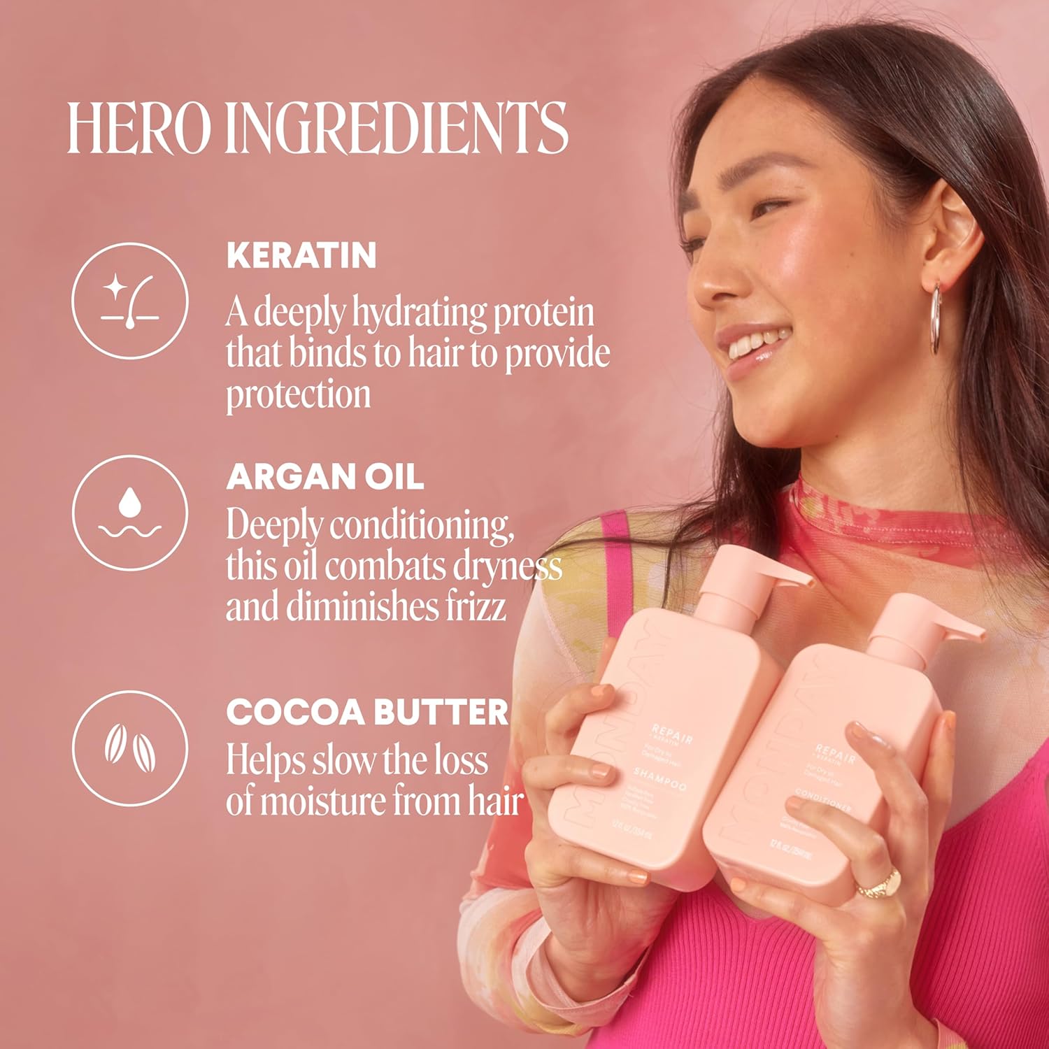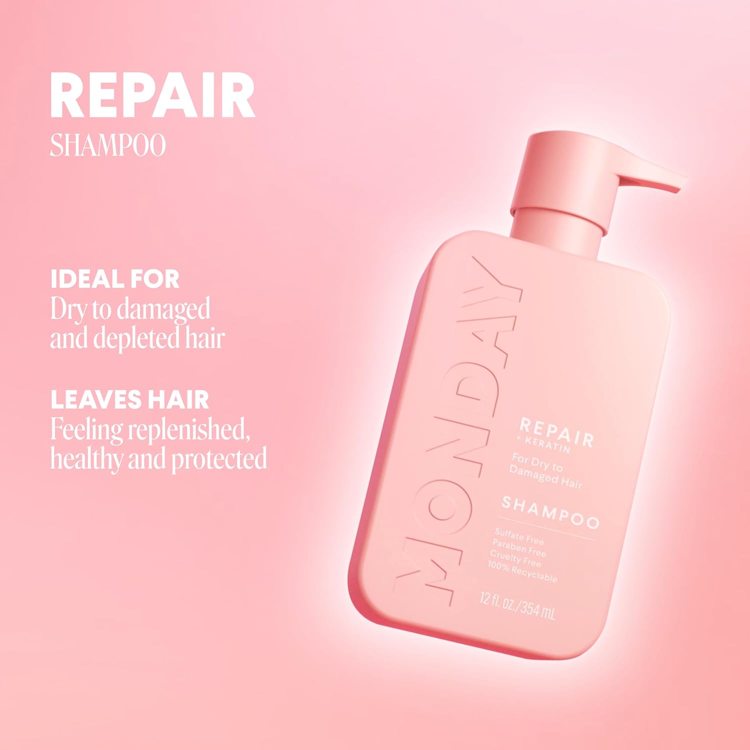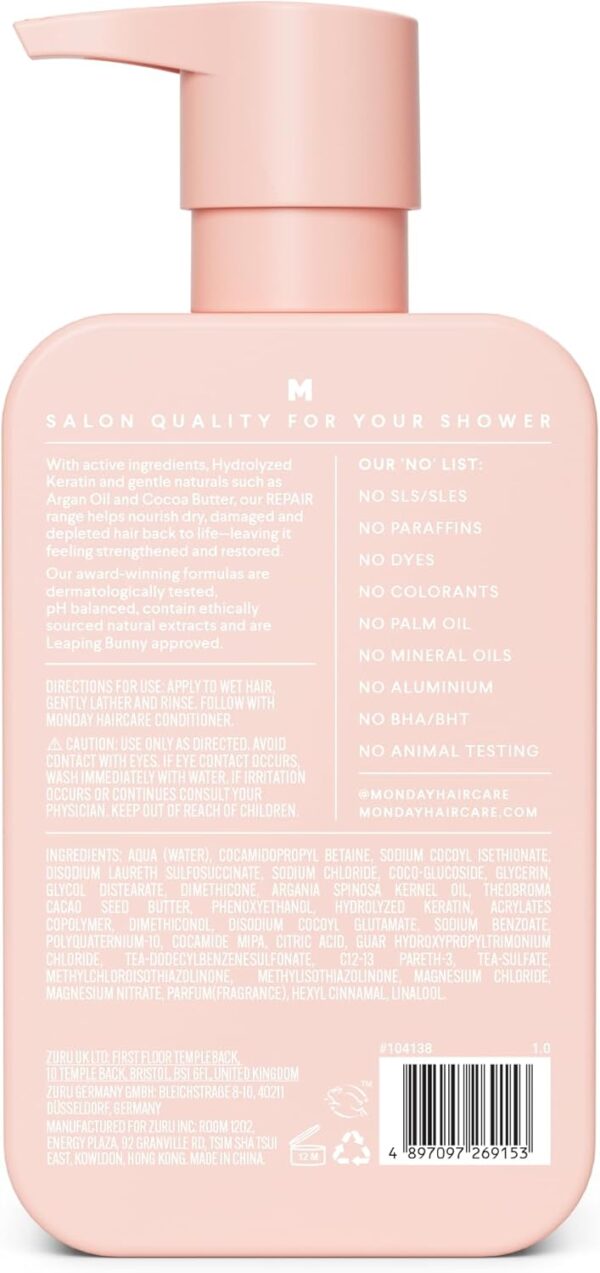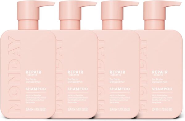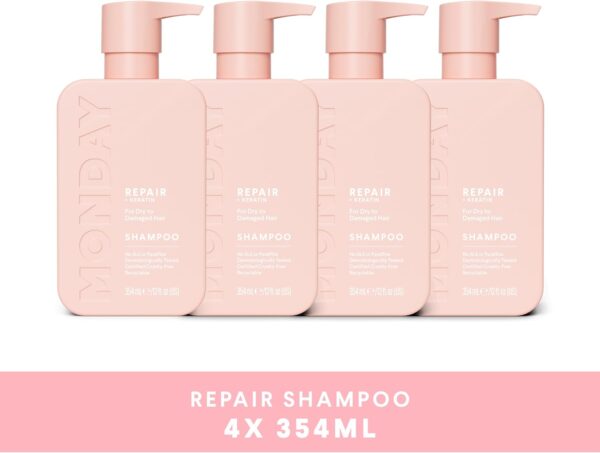 MONDAY Haircare REPAIR Shampoo with Keratin, Argan Oil & Cocoa Butter 4×354mL For Dry to Damaged & Depleted Hair 4×354mL