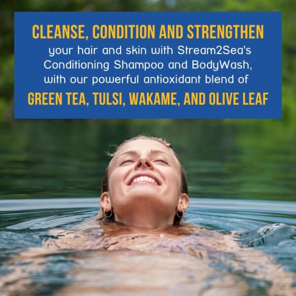 Cleanse, condition and strengthen your hair and skin. Natural shine following exposure to the sun or salt water with Stream2Sea