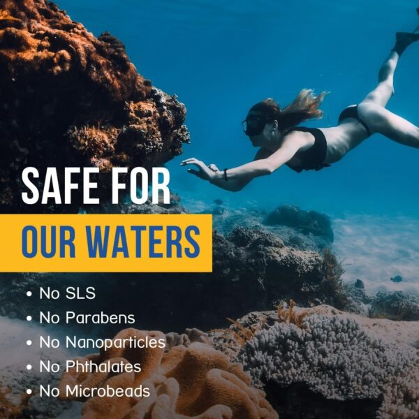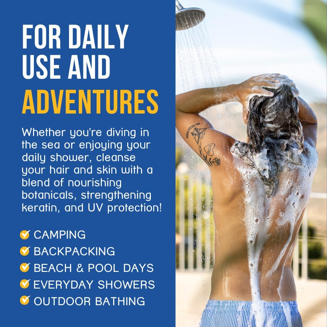 Triple Hair Care: Reef Safe & Ocean Friendly — This 3-in-1 non-toxic conditioning swim shampoo functions as both shampoo and conditioner, ideal for eco-conscious consumers and everyday use. Perfect for active adventurers and those using shampoo for dry hair or hair growth shampoo.
