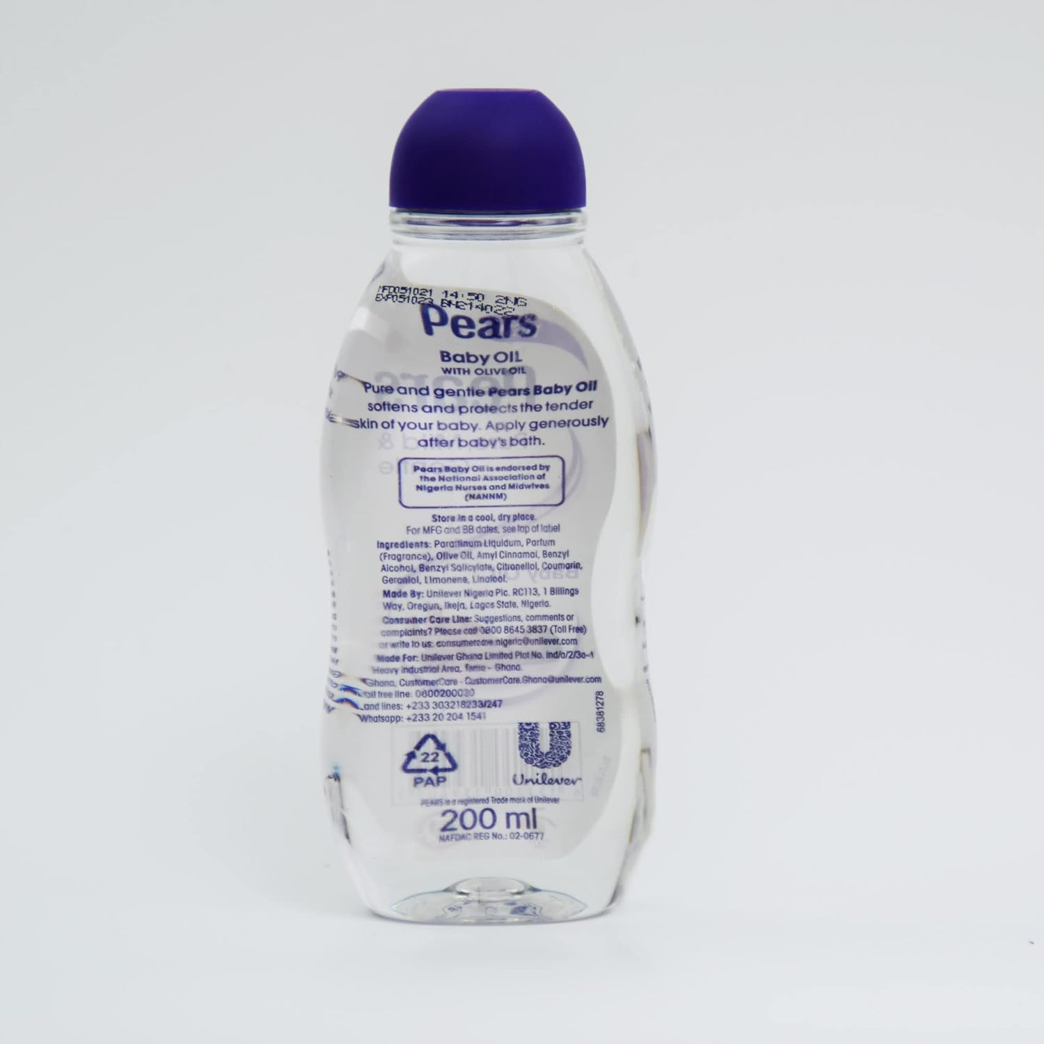 New improved Pears Baby Oil with Olive Oil gently soften and protects the tender skin and hair of your baby. Apply generously on baby hair or body after baby’s bath. Pears Baby Oil with Olive Oil. Good for all skin. Apply after bath or change of nappy. 200ml, Store in a cool, dry place.