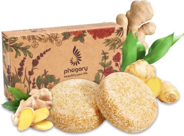 PHOGARY 2PCS Ginger Hair Shampoo Bar – Organic Ginger Hair Soap Various Plant Essence Shampoo Natural Hair Care with Plant Extracts, Moisturizes Hair and Cleans Scalp Pores Anti Dandruff 3.88 oz