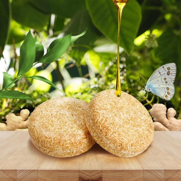 [Ginger] Solid shampoo bar for dry hair, our shampoo bar is made from the finest natural ingredients, including nourishing oils and botanical extracts, plants ingredients and no harsh detergents chemicals, so you can use it with confidence, even with sensitive skin. A natural alternative for liquid shampoo.