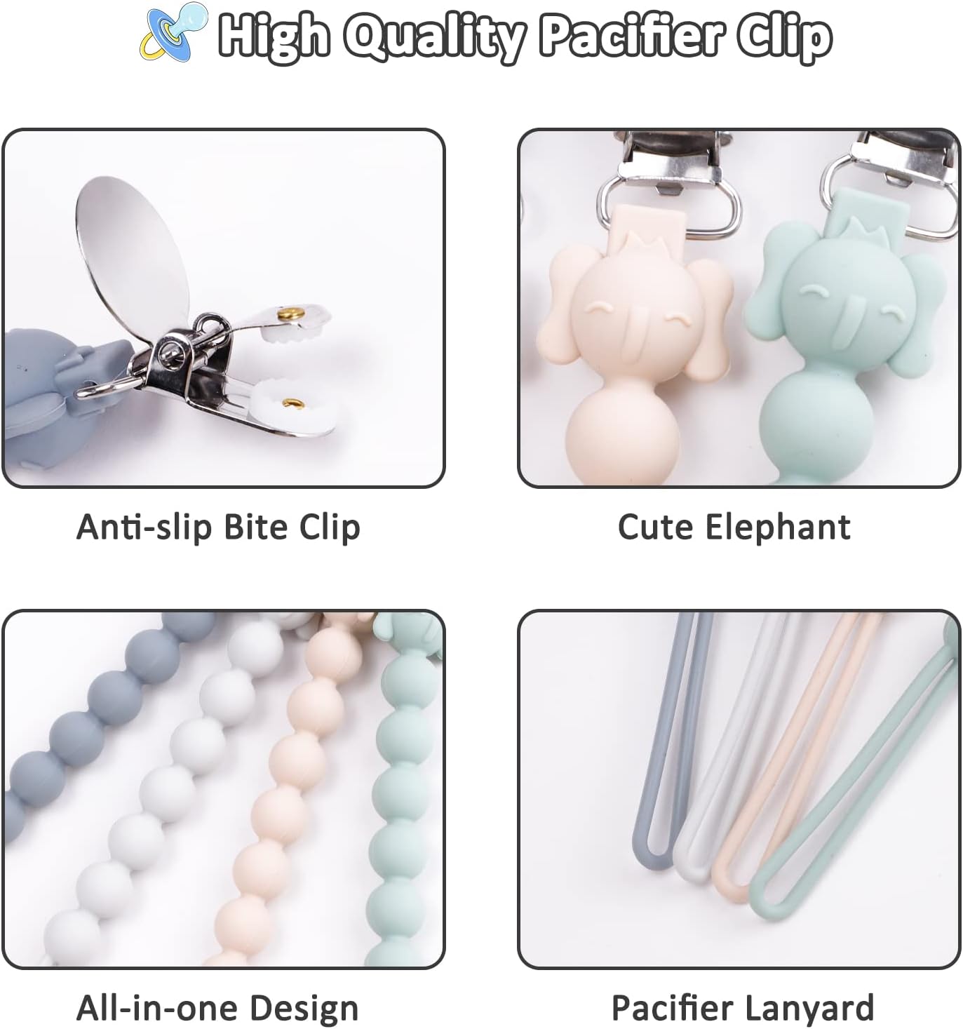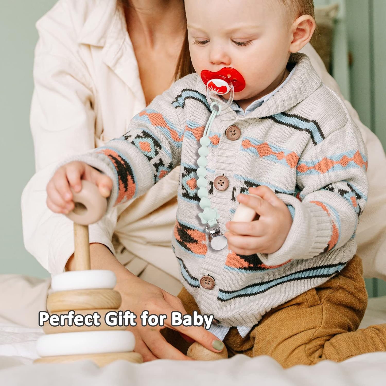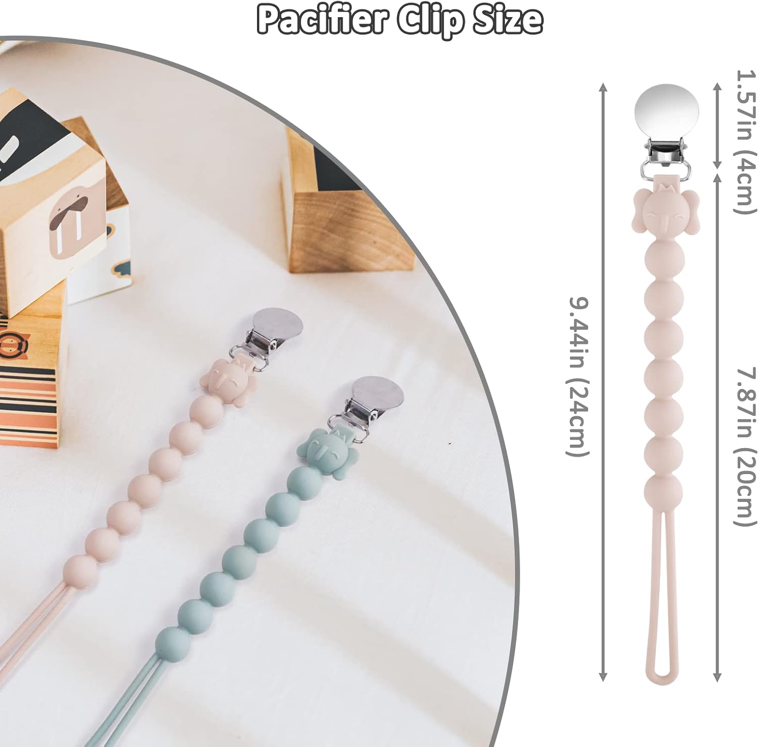 【2 in 1 Pacifier Clip】This dummy holder leash will keep you from constantly searching for the pacifier you put down or that has fallen out of your mouth. In addition, this food-grade silicone pacifier clip not only holds the pacifier, it is teether itself, which can withstand chewing and tugging.