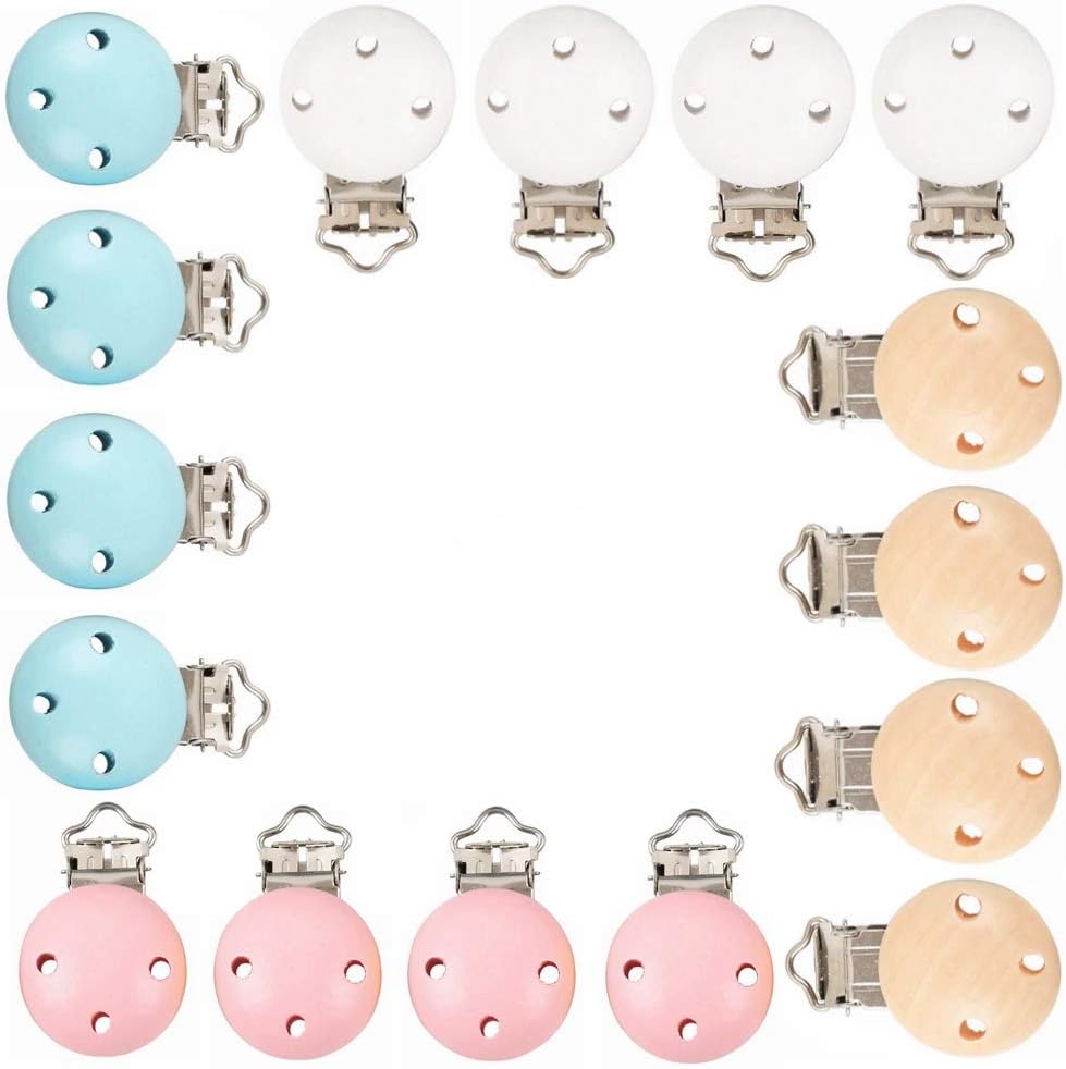 Points for Attention: Size: 4.5 x 3 cm (1.77 x 1.18 / 4.5 inches). The dummy clips are made of high-quality wood and iron. ❤️It is the perfect use for baby bib or mitten clips, clothes accessories folders, DIY jewellery accessories, toy holders, sewing or ribbon crafts. Package includes: 16 x wooden dummy clips.