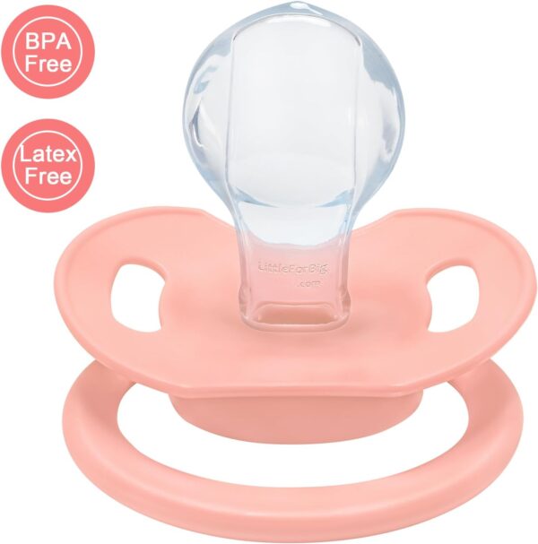 About Products: IMPROVEMENTS from BIGSHIELD PACIFIERS. New shape to match a popular baby pacifier, larger button for easier DIY decorating, Clear silicone nipple, Innovative dust cap to keep good hygiene, designed with medical grade plastic. These adult sized pacifiers will please any “big baby”. The pacifier has a large nipple, nipple guard, and holding ring. ADULT SIZE PACIFIER WITH A SOFT SILICONE NIPPLE Perfect for those who prefer a genuinely adult-sized pacifier. TEAT SIZE: 4 cm long x 3 cm wide. PACIFIER SHIELD SIZE: 6 cm wide x 4.8 cm tall. GOOD FOR A HEALTHY LIFE STYLE The unique and adorable pacifiers set features a I Love Daddy pattern with a fun and stylish design that is sure to bring a smile to you. The pacifier has been redesigned from the popular BIGSHIELD Pacifiers and now features a more natural shape for ultimate comfort. Constructed using high-quality medical grade plastic, this pacifier is designed for lasting durability, as well as offering a soft and natural feel in your mouth. Perfect for providing stress relief or relaxation, this pacifier is the ideal solution for those looking for maximum comfort. Pacifiers have been used as a therapeutic trainer for speech therapy and physiotherapy. And they can play a role in the treatment of snoring and sleep apnea. Reportedly they manage to cure 7 out of 10 people from snoring. In an unfamiliar playroom, babies accompanied by their pacifier evidenced more play and demonstrated less distress than did babies without them. They are excellent at soothing and calming even adults. The widespread occurrence of attachments to pacifiers as well as their importance as security objects should reassure parents that they are a normal part of development for most of babies. BEST QUALITY ADULT PACIFIERS AVAILABLE ON THE MARKET. BPA, and LATEX FREE 100% CUSTOMER SATISFACTION GUARANTEED!