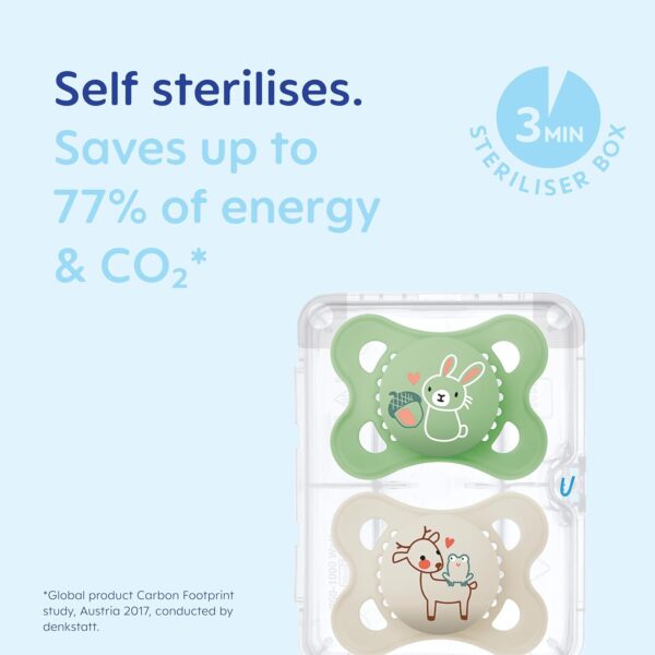 Travel case: No need for a separate steriliser, the MAM soothers come in a special travel box that can be used to quickly sterilise them in the microwave