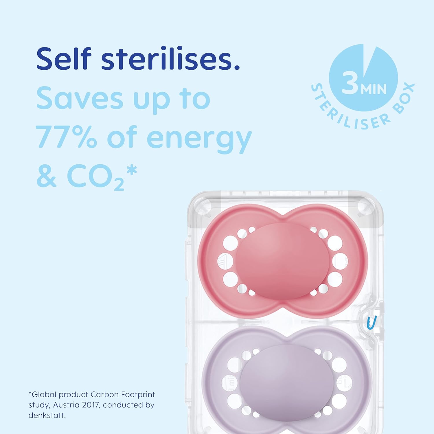 Travel case: No need for a separate microwave steriliser, the soother comes with a practical sterilising & carry box, allowing you to easily keep your soother clean
