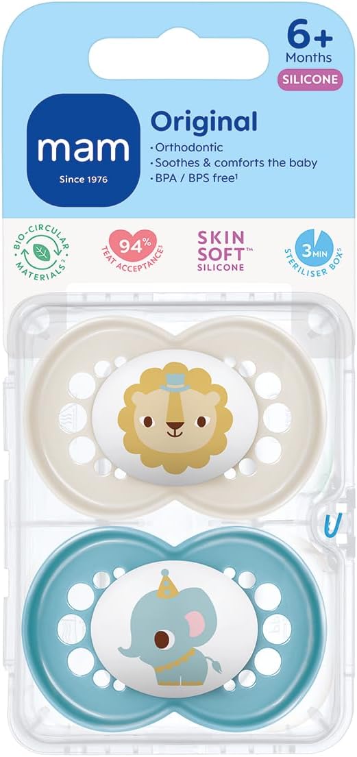 All MAM soothers are carefully tailored to precise age groups. These soothers are suitable from 6+ months – look out for our other MAM 6+ months soothers, as well as MAM wider range of baby products, covering everything from MAM Bottles to MAM soother Clips.