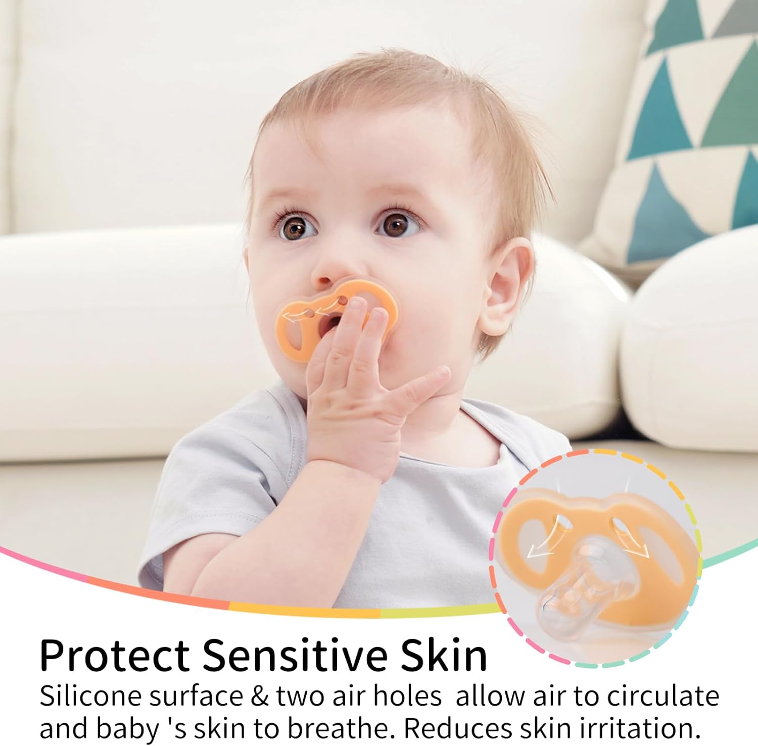 SAFE NEWBORN PACIFIERS. Made of food-grade silicone. Safe in dishwasher, sterilizer, and boiled water. BPA FREE, latex, lead and phthalate free. Easy to Clean.