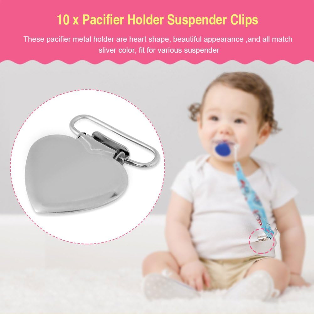 Pacifier Suspender Clips,Tyenaza 10Pcs Heart Pacifier Clips Metal Pacifier Holder for Soother, Pacifier, Dummy,Bib, DIY