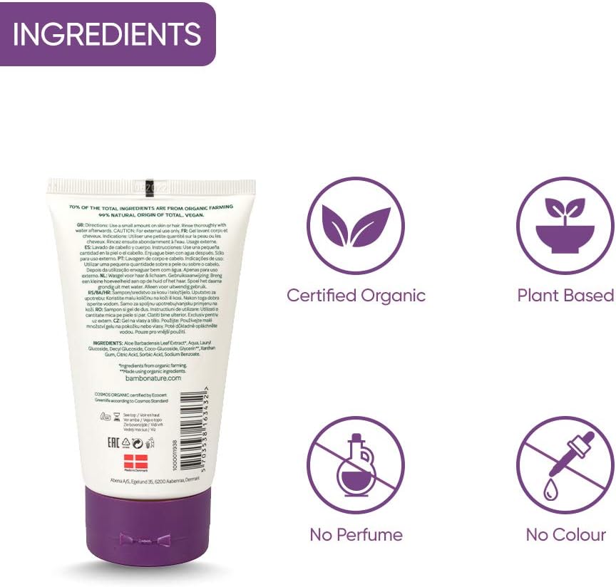 ECO-LABELLED : Because you care about the environment, we make our Bambo Nature Kids Shampoo & Body Wash from responsibly sourced ingredients – 70% from Organic Farming. Certified by Ecocert COSMOS