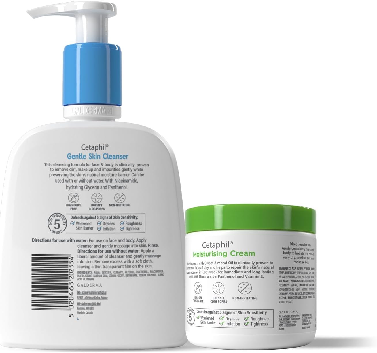 Cetaphil Hydrating Gentle Skin Cleanser 236ml + Body Moisturising Cream 450g Skincare Set, For Dry & Sensitive Skin
