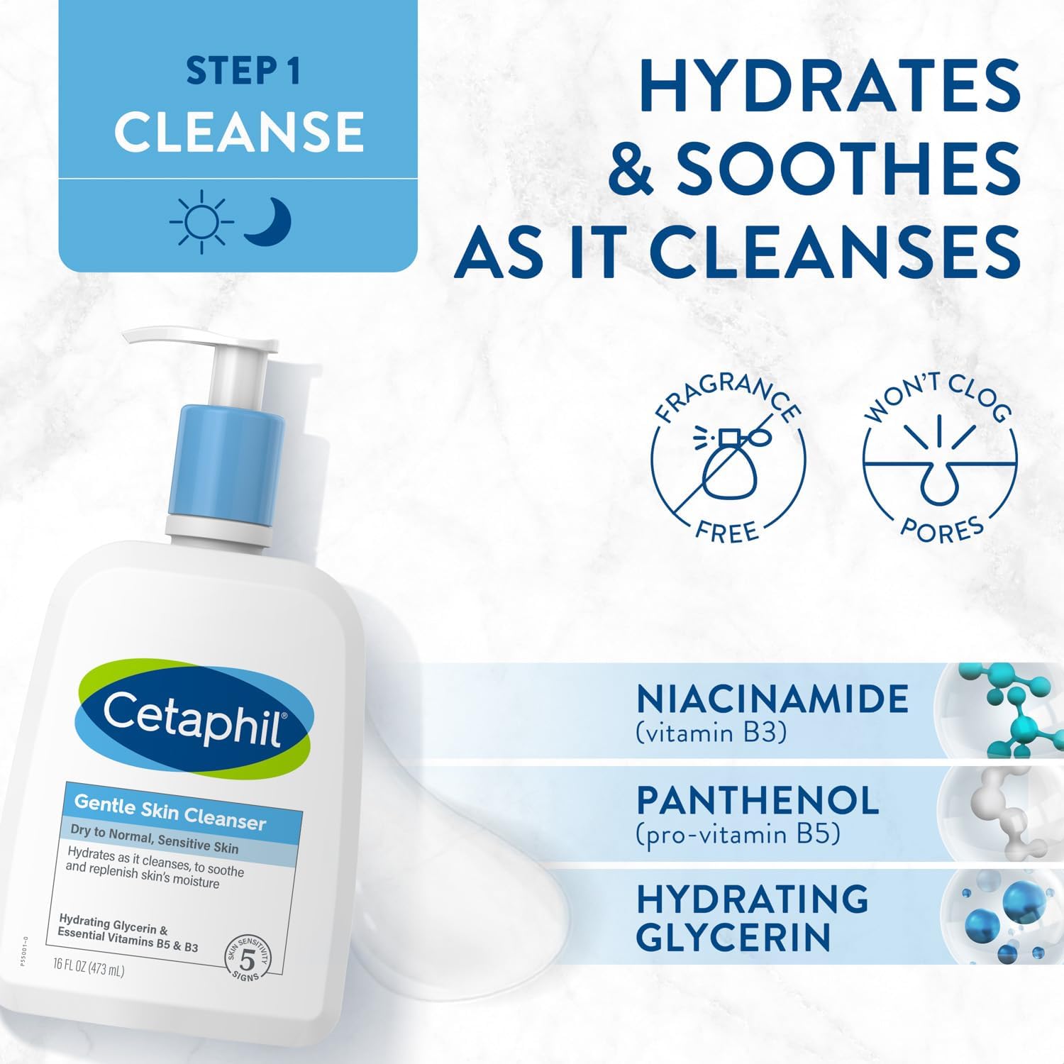CETAPHIL GENTLE SKIN CLEANSER: A soap-free daily cleanser which hydrates as it cleanses and is clinically proven to remove dirt, makeup and impurities