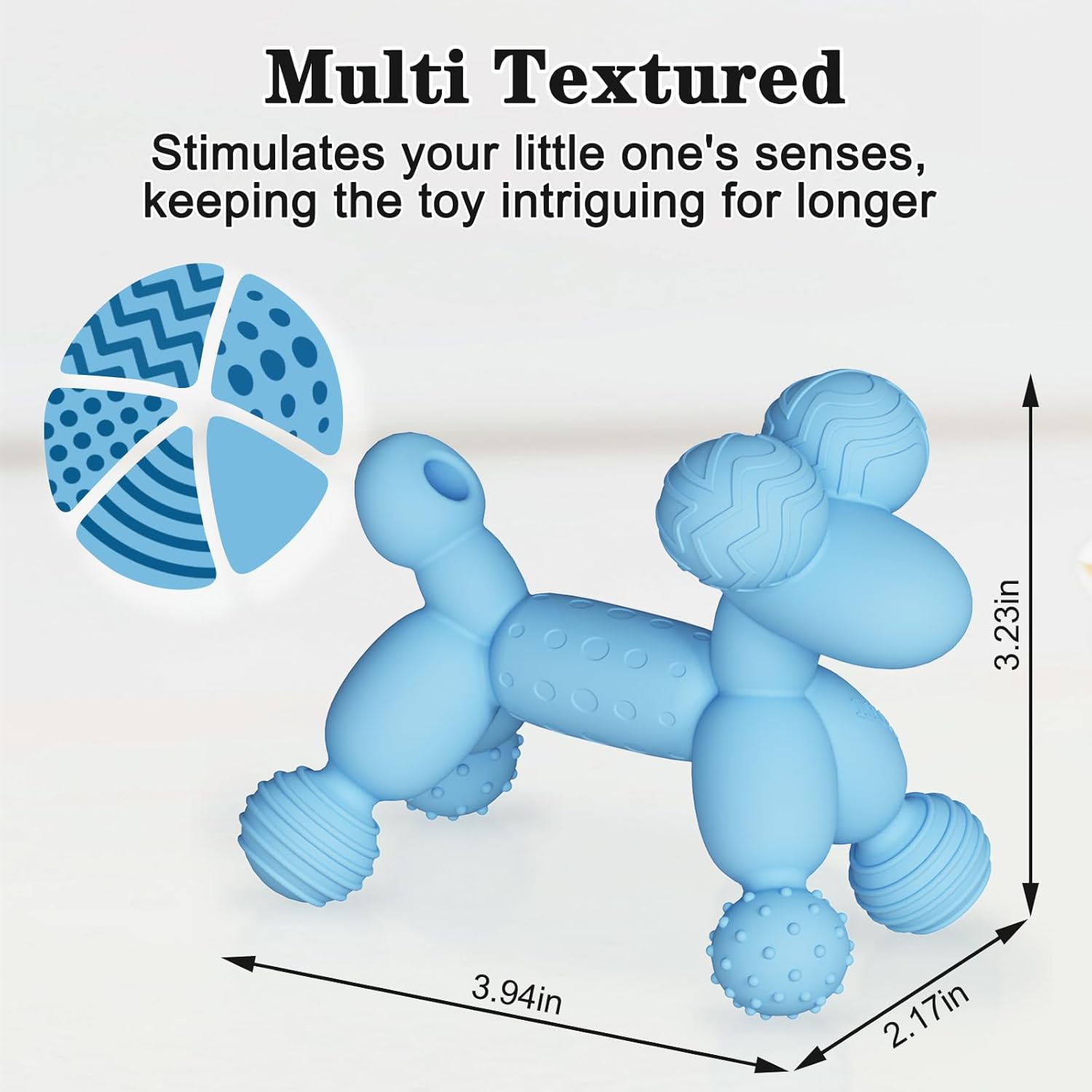 Perfect Size – Unlike other teething toys that are hard to grasp, our teether is a perfect size and weight, meaning it’s easy for little hands to hold and little months to chew. Our sensory teething toy will keep your baby busy and happy and let mom get some rest