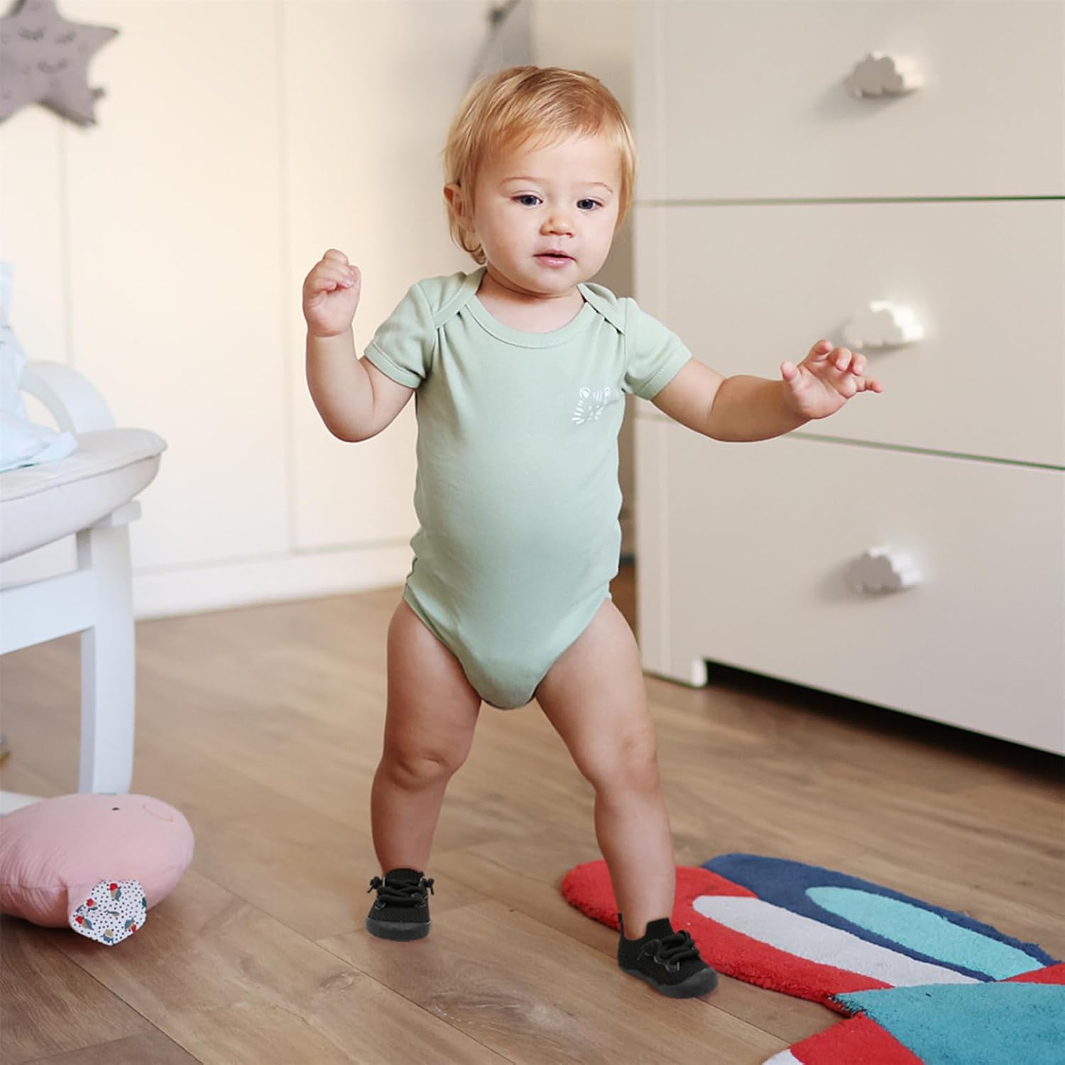 JIASUQI Baby Shoes Soft Baby First Walking Shoes Wide Barefoot Baby Boys Girls Shoes Soft Sole Infant Sneakers Toddler Lightweight Sock Shoes