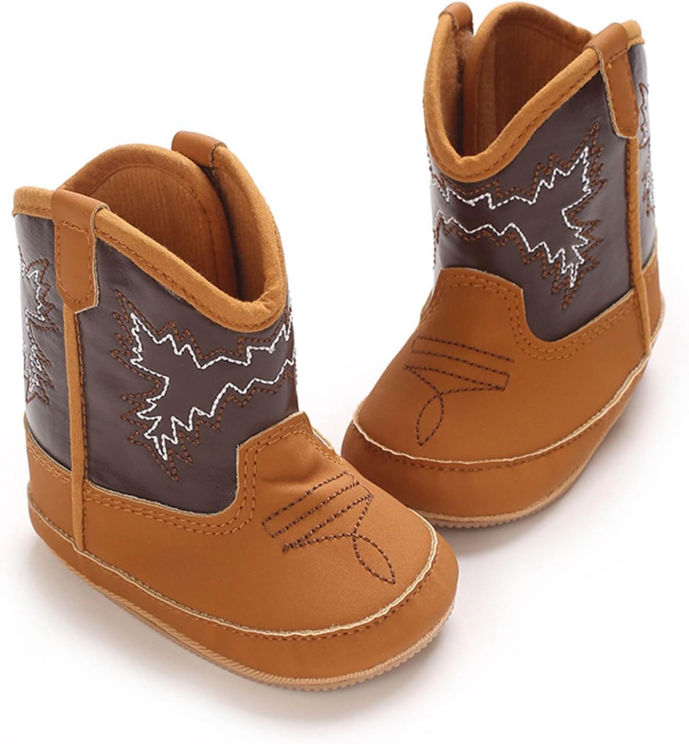 Baby Booties Western Baby Cowboy Boots Leather Western Boots Cowboy Bootie Soft Sole Non-Slip Crib Shoes for Infant Toddler Girls Boys Newborn
