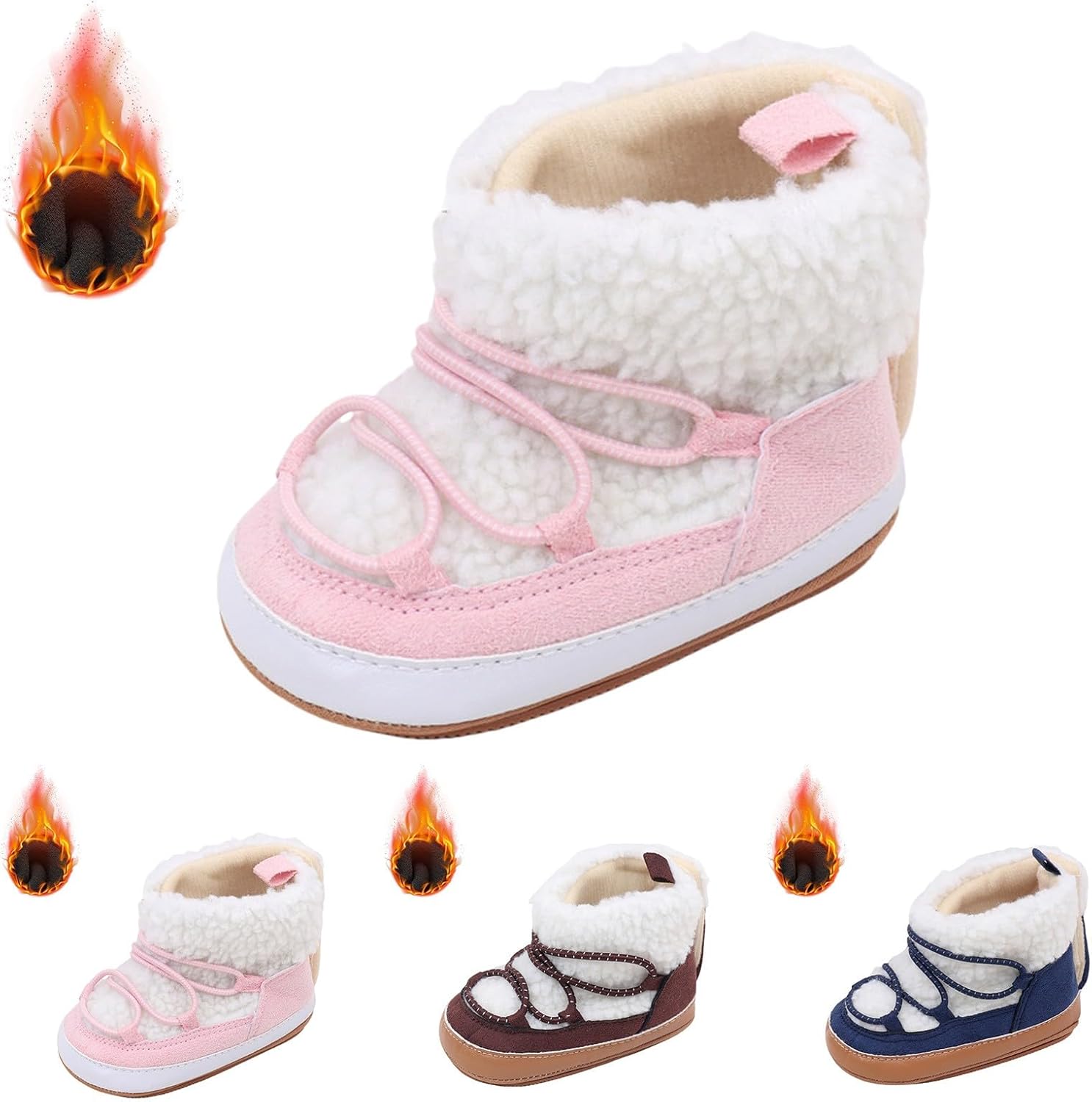 Royal Icon 2 x Pairs Baby Booties 0-3 Months – Adorable Warm and Safe Baby Slippers-Baby Boots Soft Stylish-Newborn Baby Boys Girls Bootees – Ideal for Indoor and Outdoor Use Ri352
