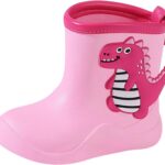FUNCOO PLUS Toddler Wellies Kids Rubber Wellington Boots Waterproof Rain Boots for Boys and Girls with Handles in Fun Pattern