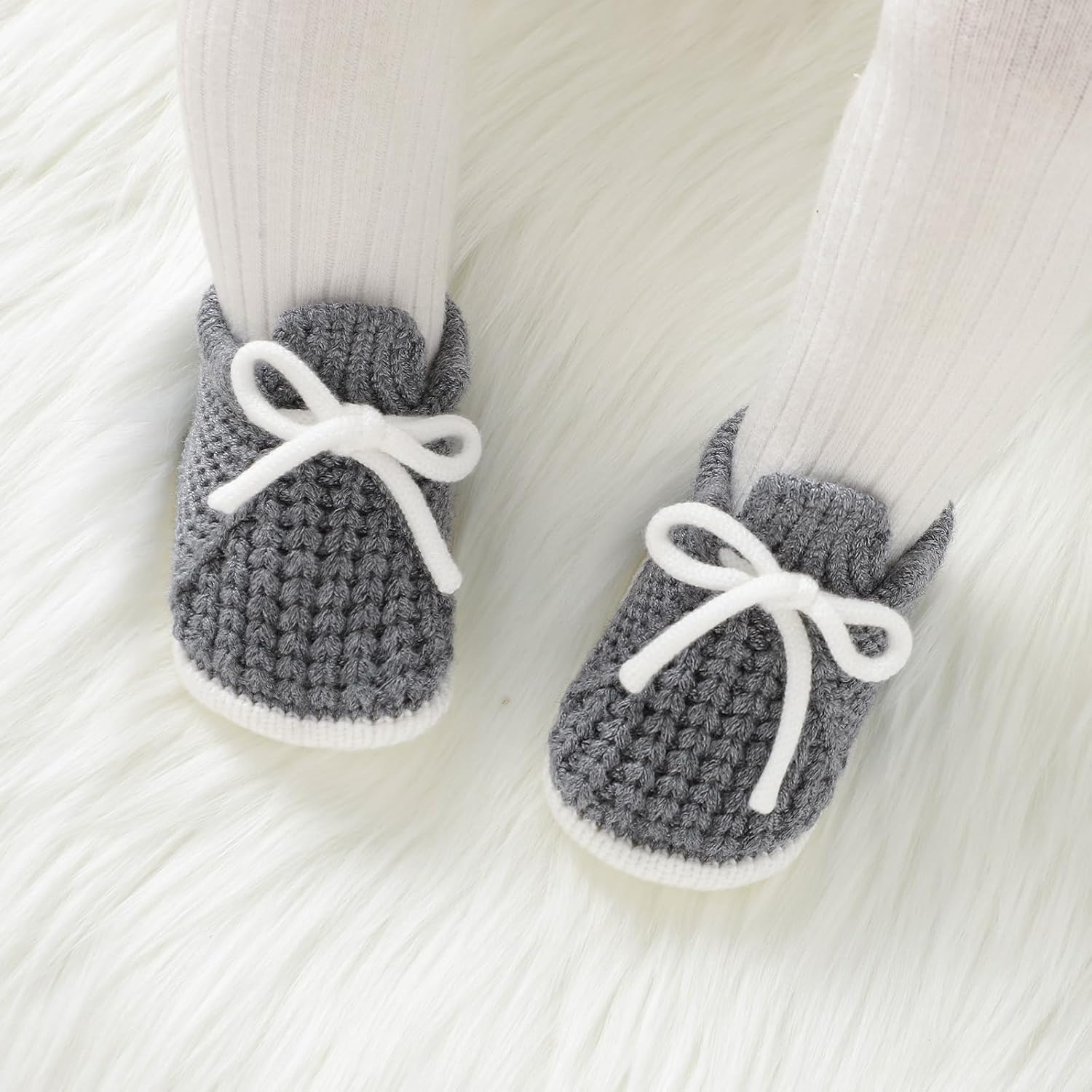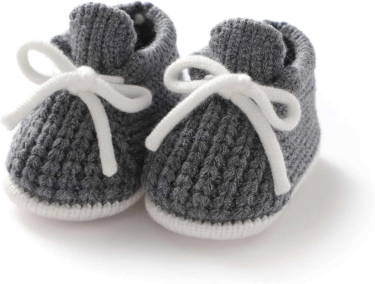 LAWKUL Baby Booties Knit Newborn Shoes Cozy First Walkers Infant Toddler Boots for Boy Girls 0-3 Months