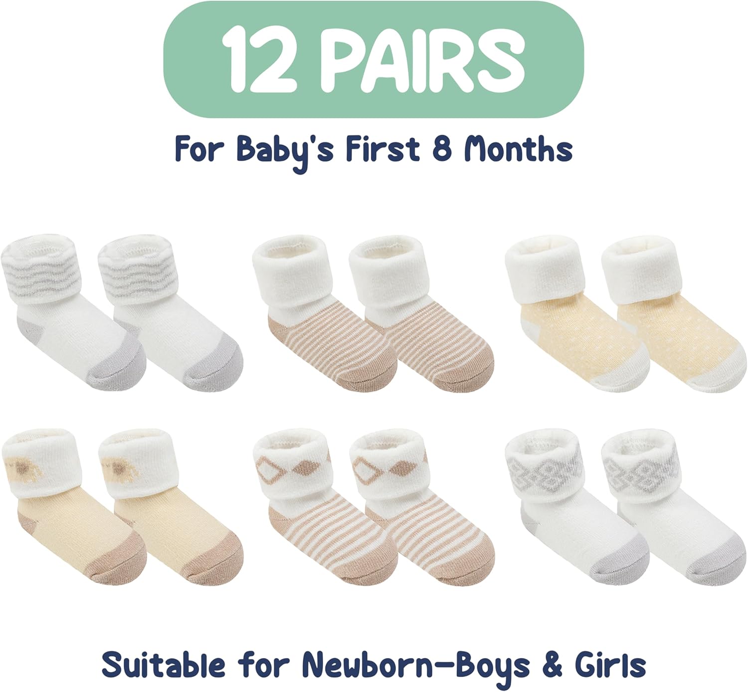 Mother’s Choice Organic Cotton Baby Socks, 12 Pairs, Unisex 0-6 Months – Soft, Hypoallergenic Newborn & Infant Socks – Baby Girl & Boy Gifts, (12Pcs, Brown)