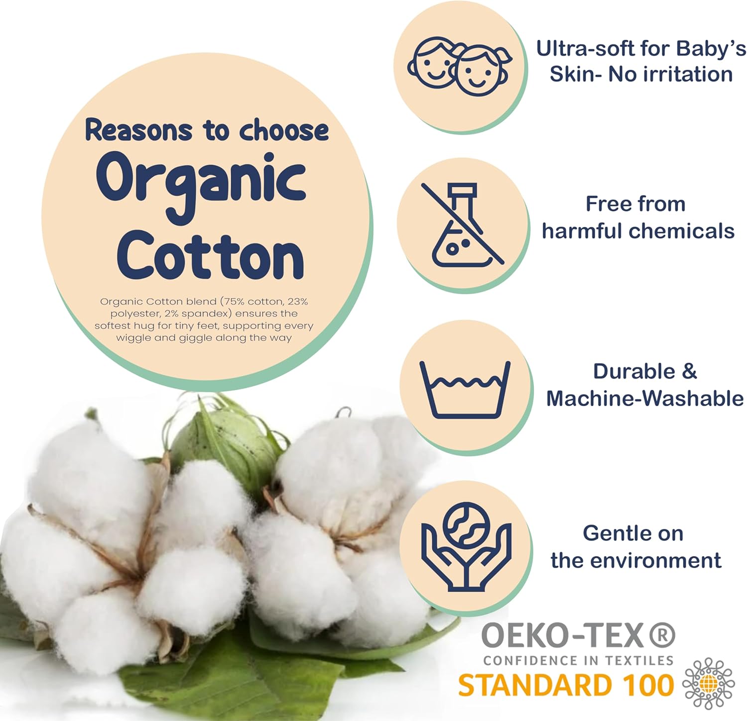 Organic Cotton: Mother’s Choice baby socks are delicate, hypoallergenic, and made of organic cotton. They promote sustainable agricultural methods while ensuring a healthy environment by being devoid of harmful materials, providing breathability and moisture absorption, and standing the test of time.