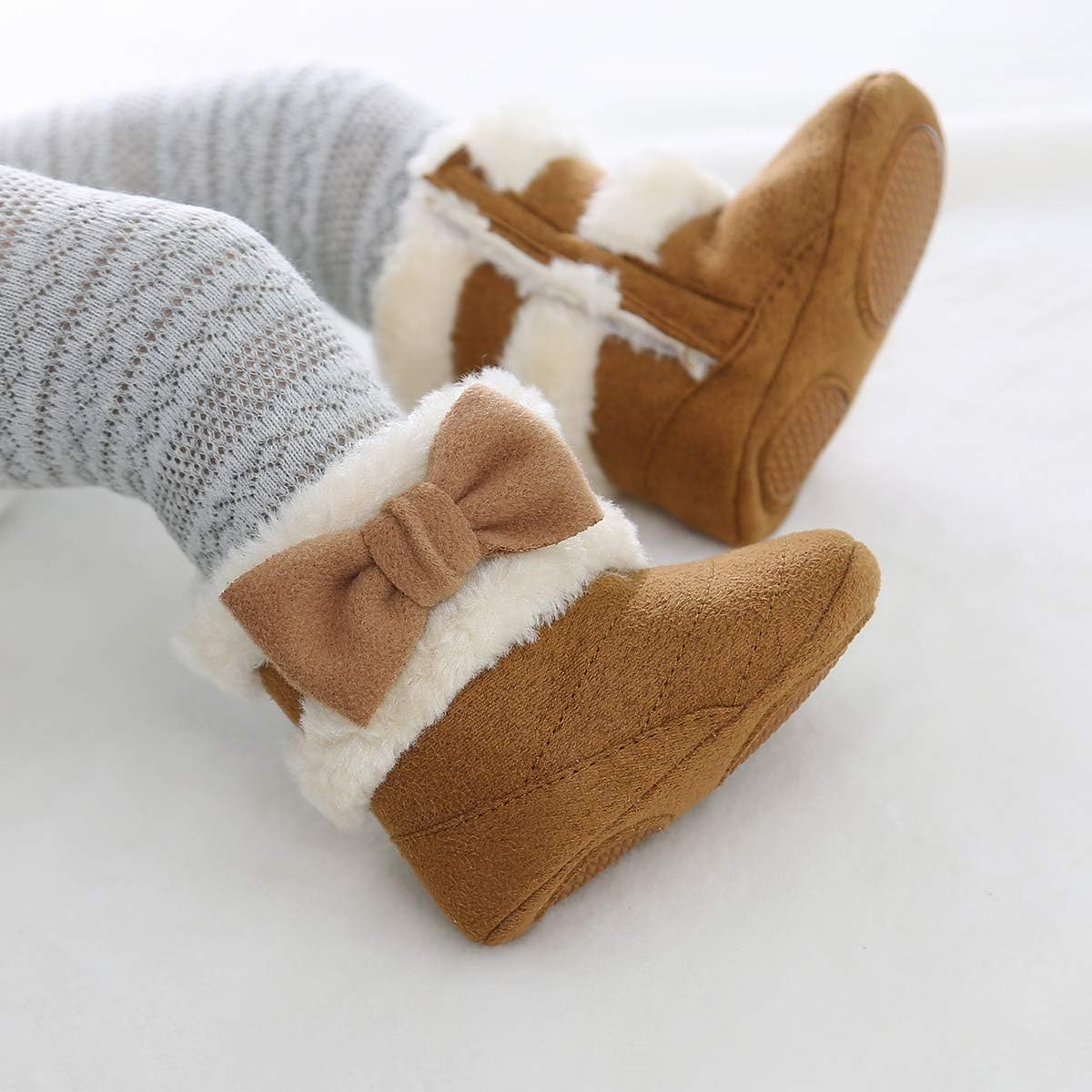 Petyoung Baby Winter Warm Fleece Bootie, Newborn Non-Slip Soft Sole Winter Shoes Bowknot Prewalker Boots for Girls 0-18 Months