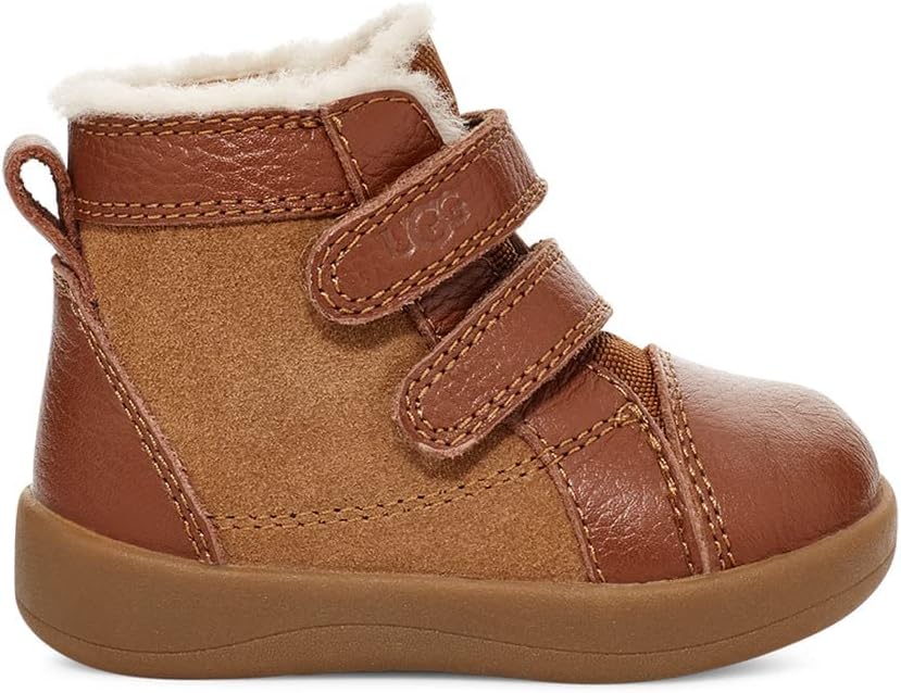 * Suede, Leather upper * UGGplush™ upcycled wool spill seams * Hook-and-loop closure * Textile lining made from 100% recycled polyester fibers with antimicrobial treatment * Molded rubber outsole * Heat-embossed UGG® logo, Screen print UGG® logo on footbed * RN 88276