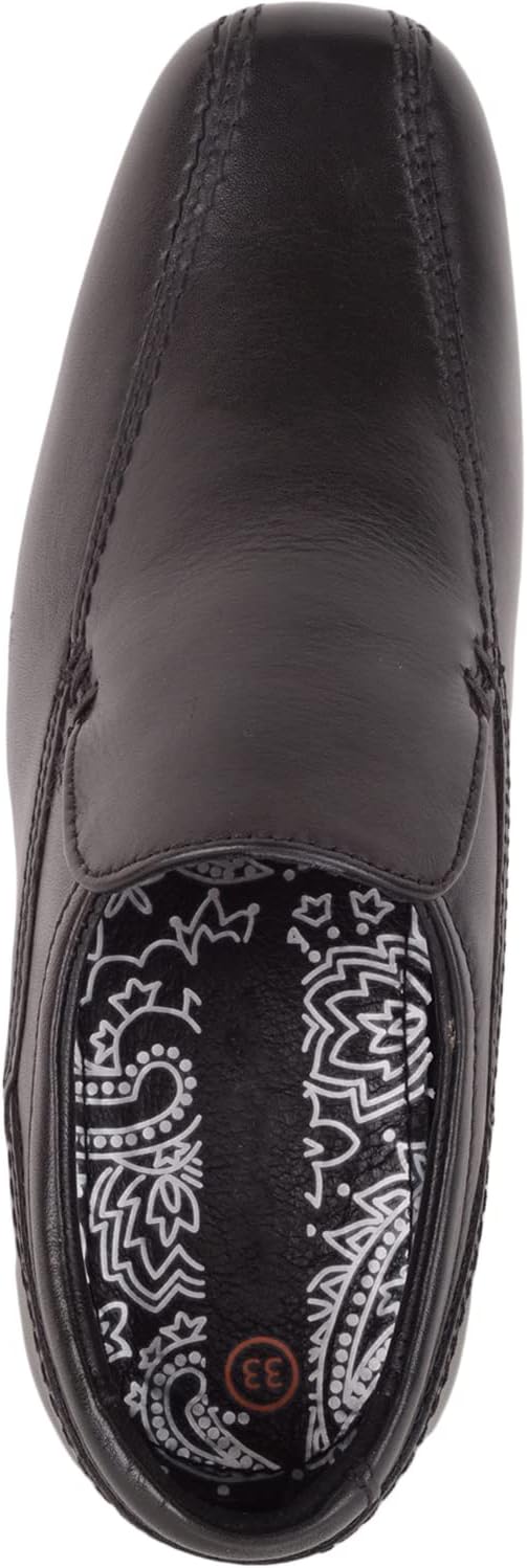 Childrens Kids Boys Easy Slip On Smooth Leather Smart Formal School Wedding Shoes. Sizes: UK Child 1 – 6. Smooth Genuine Leather Uppers with Twin Elastic Gussets and Fine Stitch and Panel Detailing. Synthetic Inners with Padded Collar and Insoles for Extra Comfort. Easy Slip On Style with Low Heel. Hardwearing Ridged Sole for Grip and Comfort.