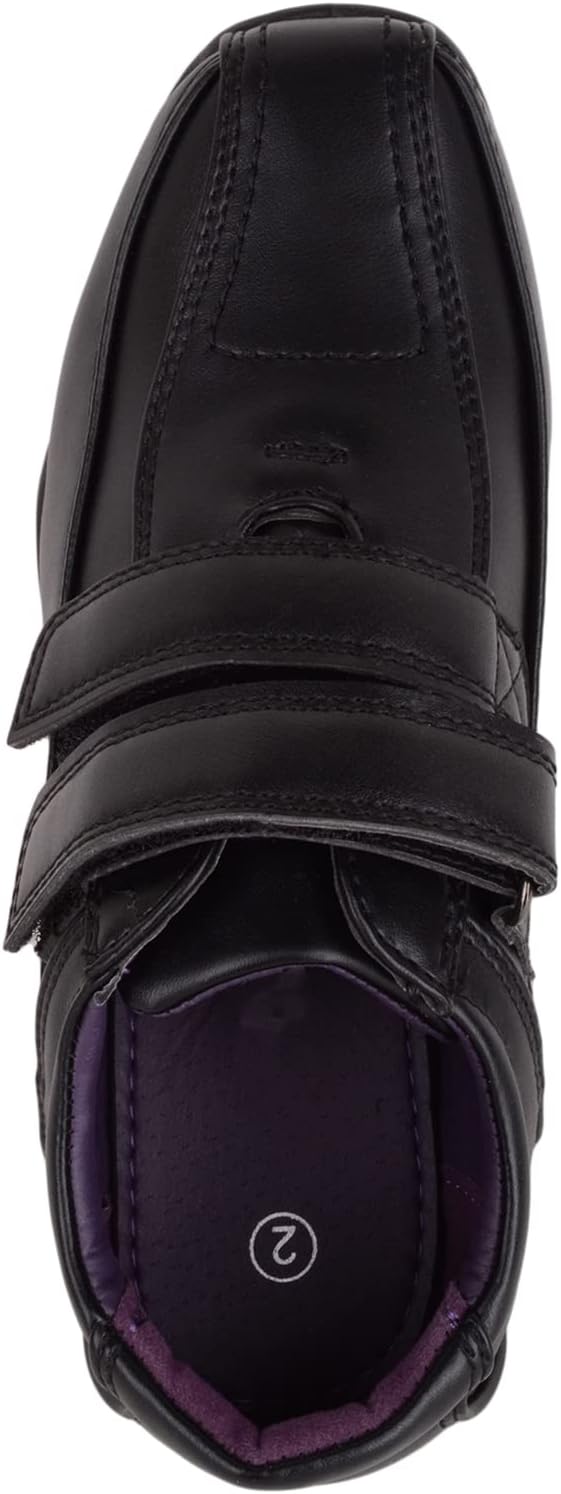 Childrens Kids Junior Boys Smart Formal Faux Leather Double Touch and Close School Wedding Shoes. Sizes: UK Child 1 – 6. Smooth Faux Leather Uppers. Textile Inners with Padded Insole for Extra Warmth and Comfort. Hardwearing Durable Ridged Outdoor Sole for Grip and Comfort. Slip On Style with Double Touch and Close Fastening for a Secure Fit. Stitch Design Around the Shoe.