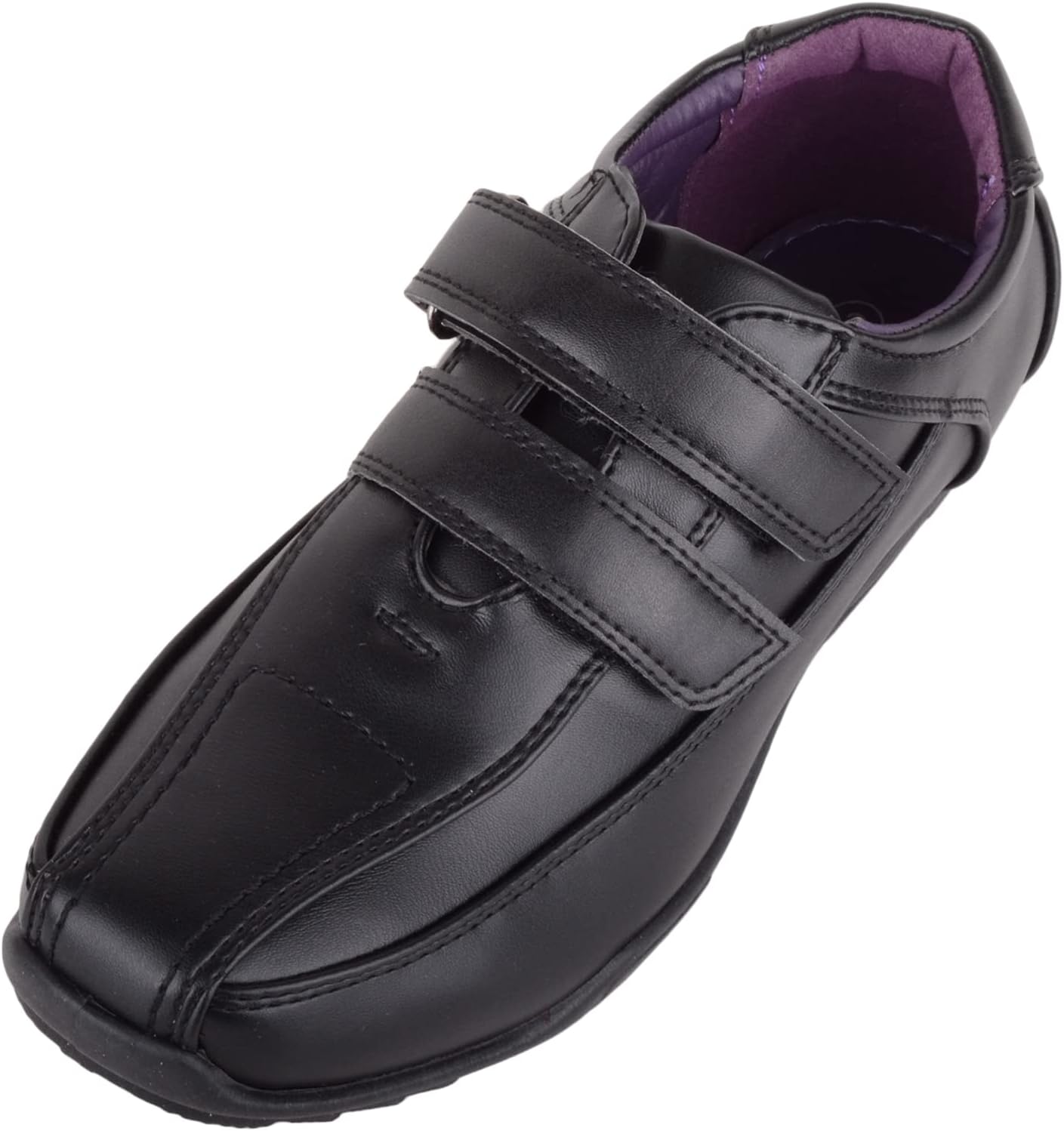 Childrens Kids Junior Boys Smart Formal Faux Leather Double Touch and Close School Wedding Shoes. Sizes: UK Child 1 – 6. Smooth Faux Leather Uppers. Textile Inners with Padded Insole for Extra Warmth and Comfort. Hardwearing Durable Ridged Outdoor Sole for Grip and Comfort. Slip On Style with Double Touch and Close Fastening for a Secure Fit. Stitch Design Around the Shoe.