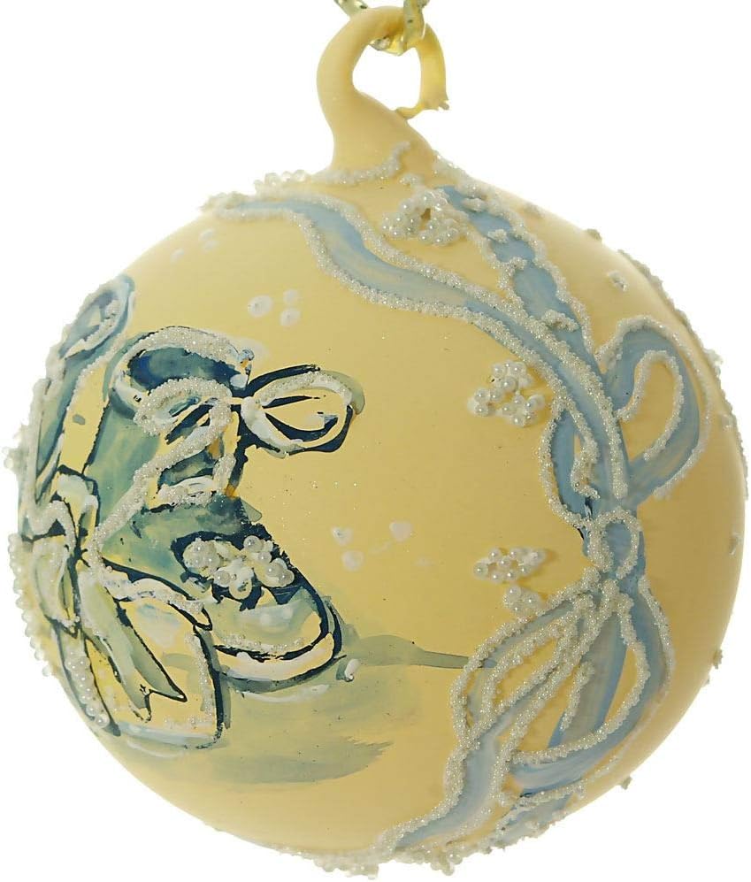 “Baby First Shoes” Christmas collection is one of the best gifts to commemorate a baby’s first year. This delicate mouth blown and hand-painted glass ornament of a baby boy’s shoes is made in Austria. There is a heart with a word “BOY” on the back of the ornament. It has been created in keeping with the age old family traditions. Each ornament is painted individually, which makes them unique and adds some small variations to each product. Size:3.15″ (80 mm). Made in Austria.
