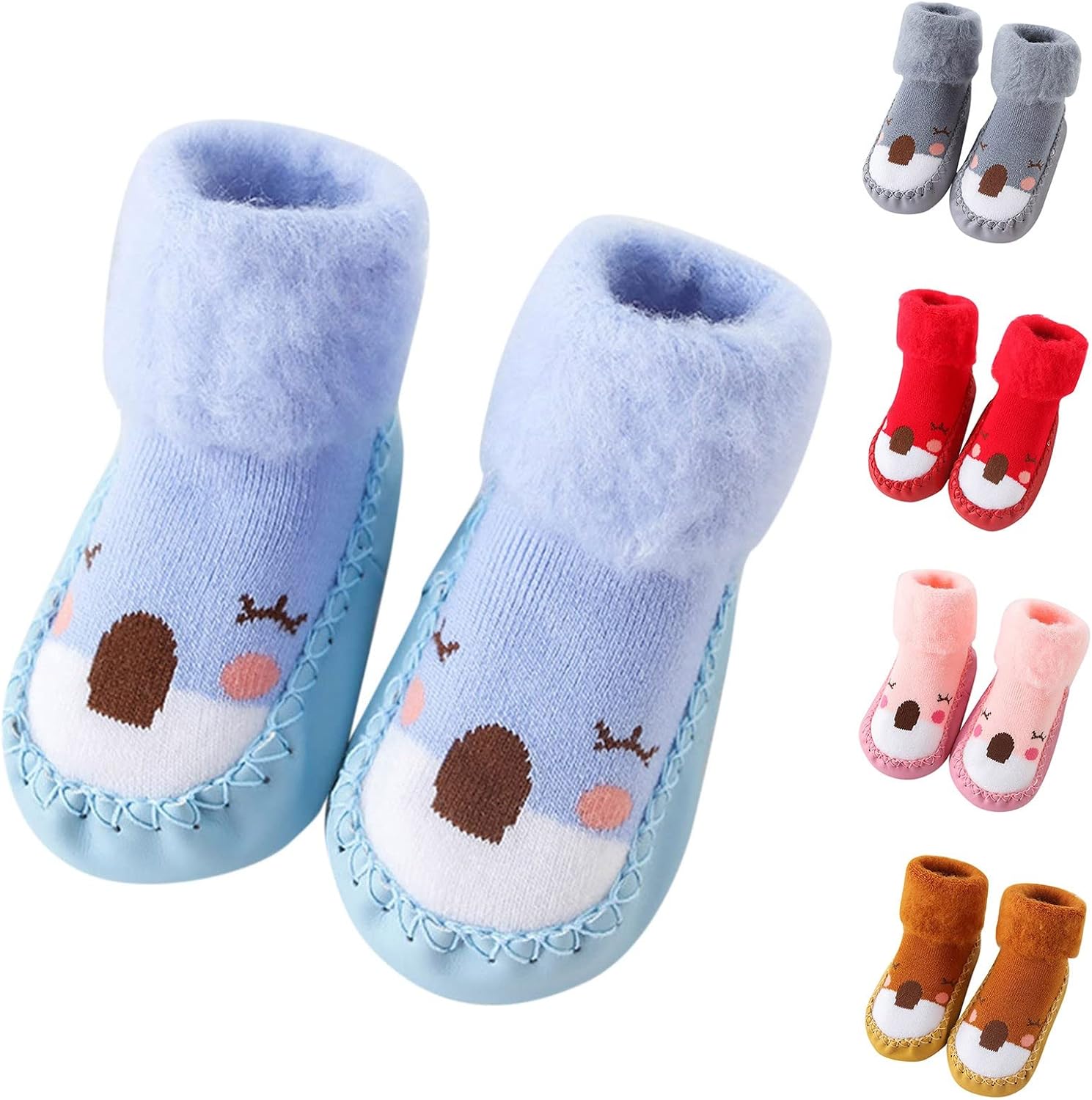 Baby Boys Girls First Walking Shoes and Winter Boys and Girls Floor Sports Shoes Flat Soles Non Slip Plush for Warm and Comfort Cartoon Pattern Toddler Athletic Shoes