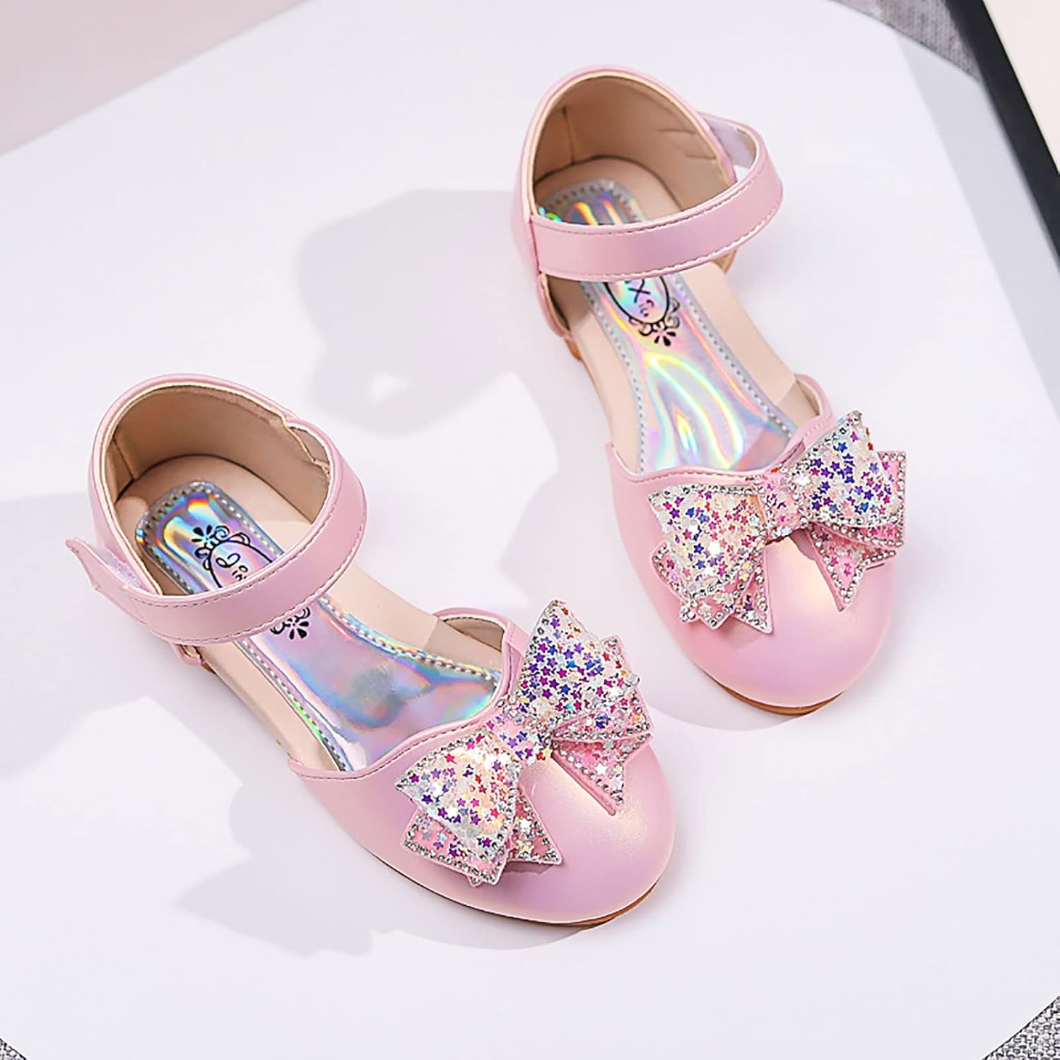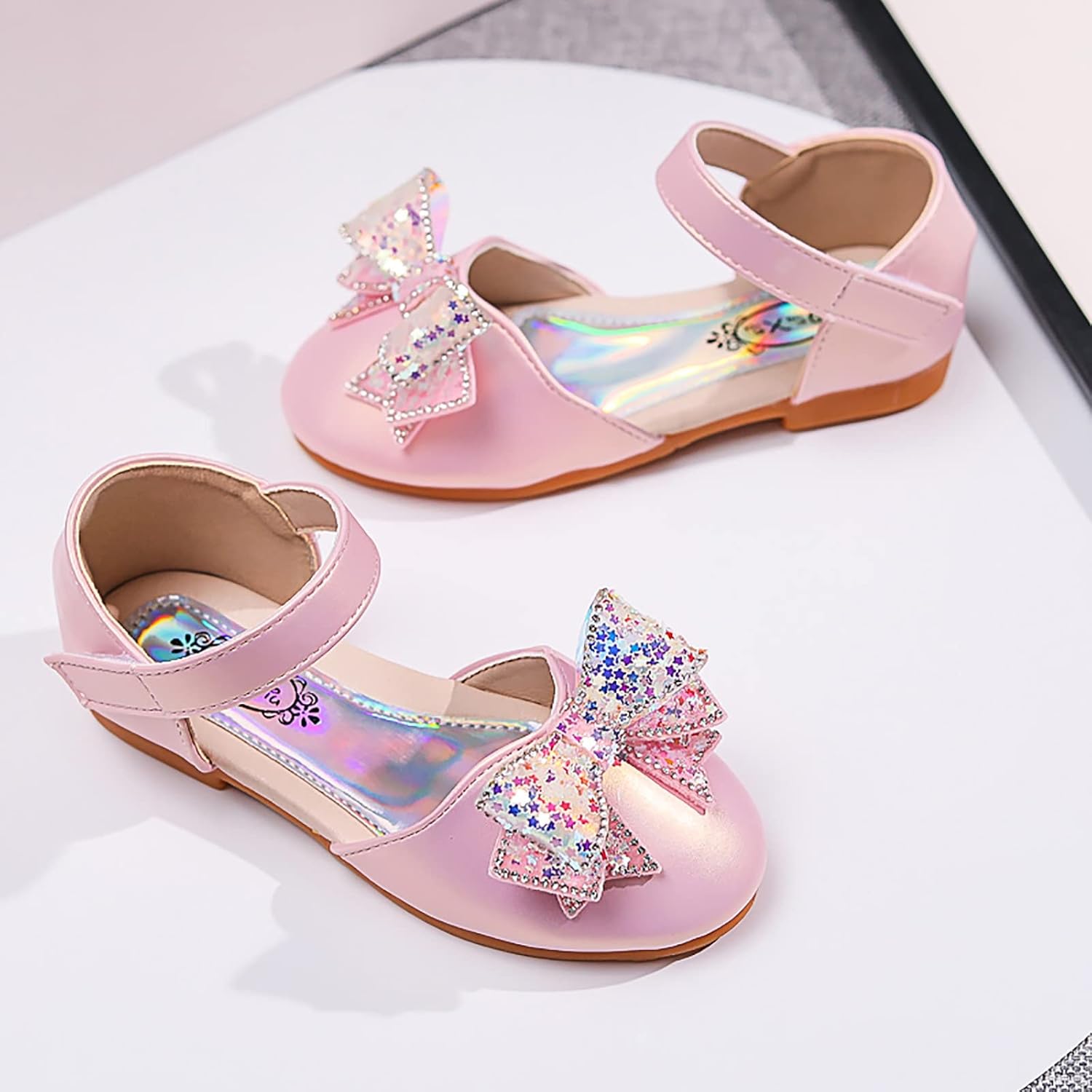 Baby Girls Dress Dance Shoes Bow Glitter Sequins Ankle 𝗟ow Heel Sandals Closed Toe Strap Toddler Kids Loafers (Pink, 9 Toddler)