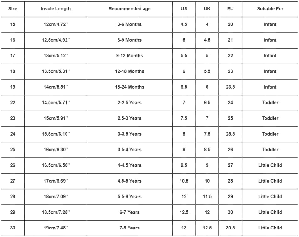 Keeping your child’s shoes clean and in good condition is effortless with our easy-to-maintain designs. Many of our can be clean with a damp cloth ( follow the manufacturer’s instructions for best results).