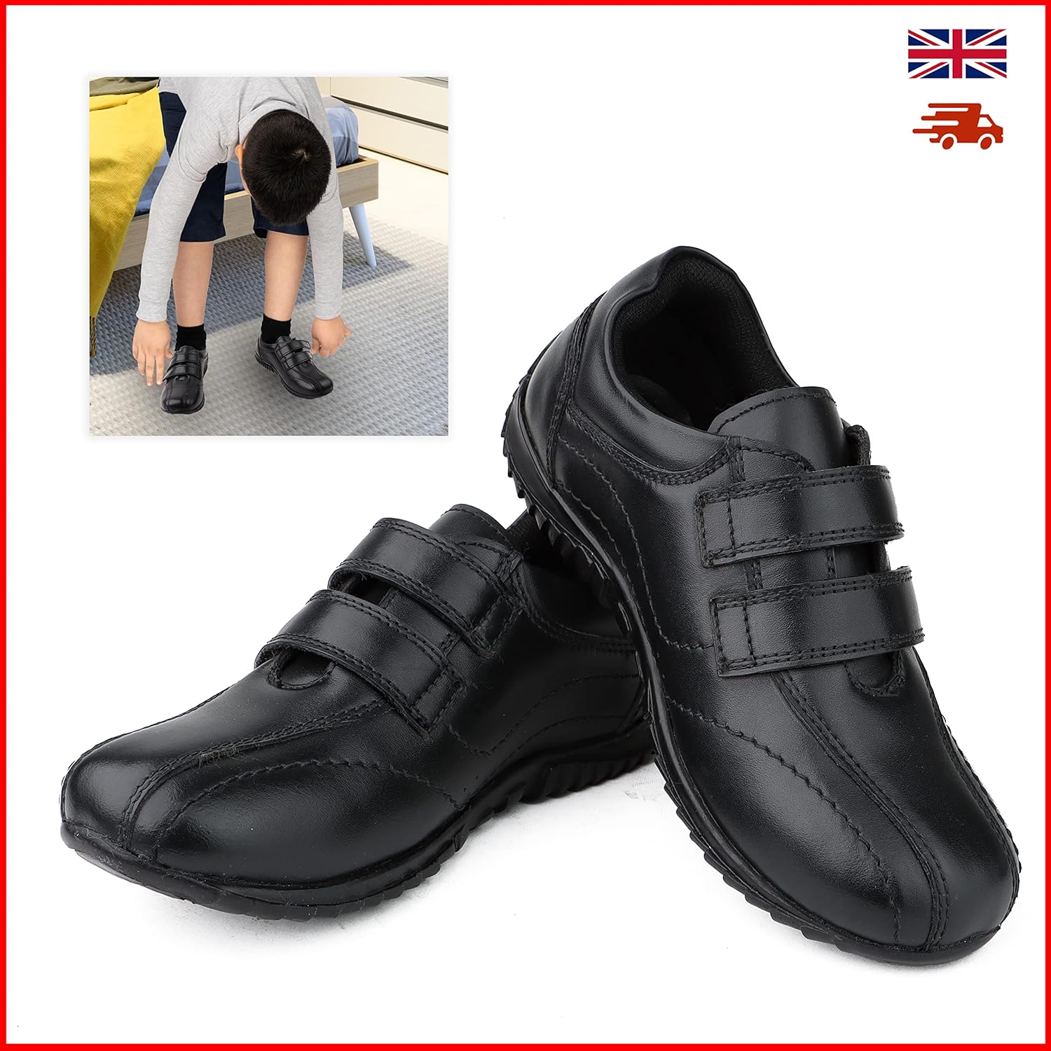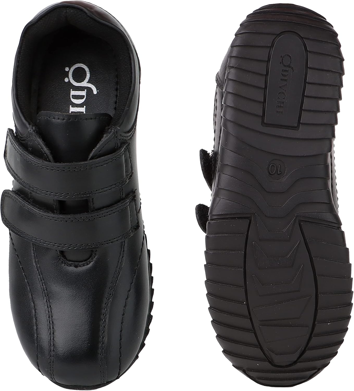 DIVCHI Presents Boys Girls School Shoes Black Leather Easy Touch Fasten Shoes DIVCHIDIVCHI