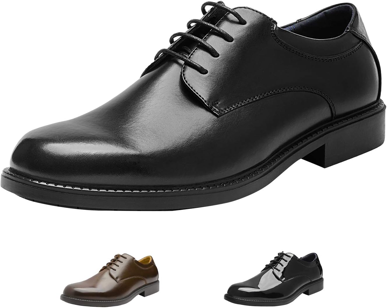 Customers find these dress shoes comfortable, with one noting the nicely cushioned insoles, and appreciate their true-to-size fit, particularly for wider feet. They receive positive feedback for their appearance, with one customer noting they don’t have the cheap patent leather look, and customers consider them excellent value for money. The build quality and lifespan receive mixed reviews – while some find them well-made and durable, others report they completely fell apart after six weeks and didn’t last four months. Additionally, several customers mention issues with the sole coming away from the shoe.