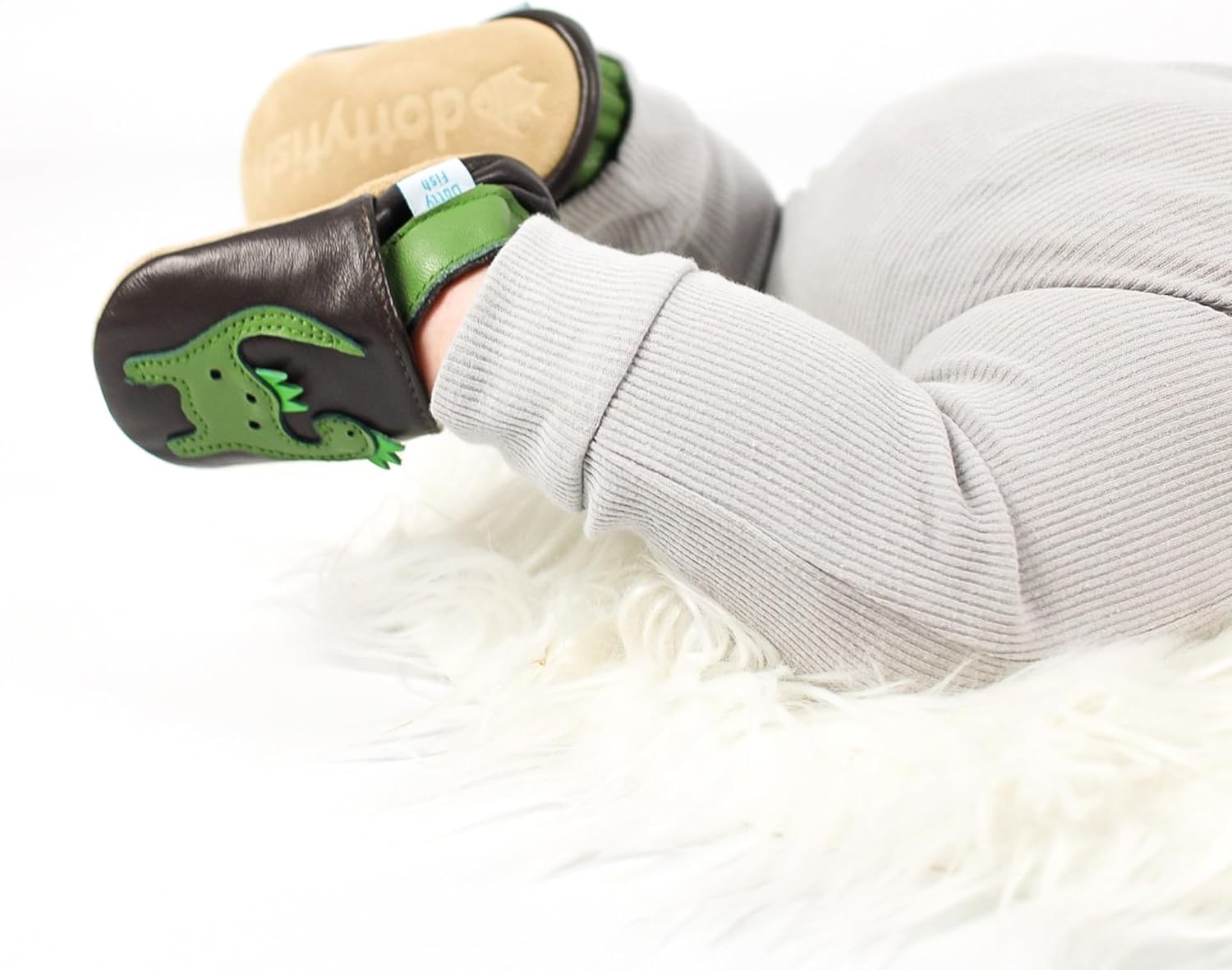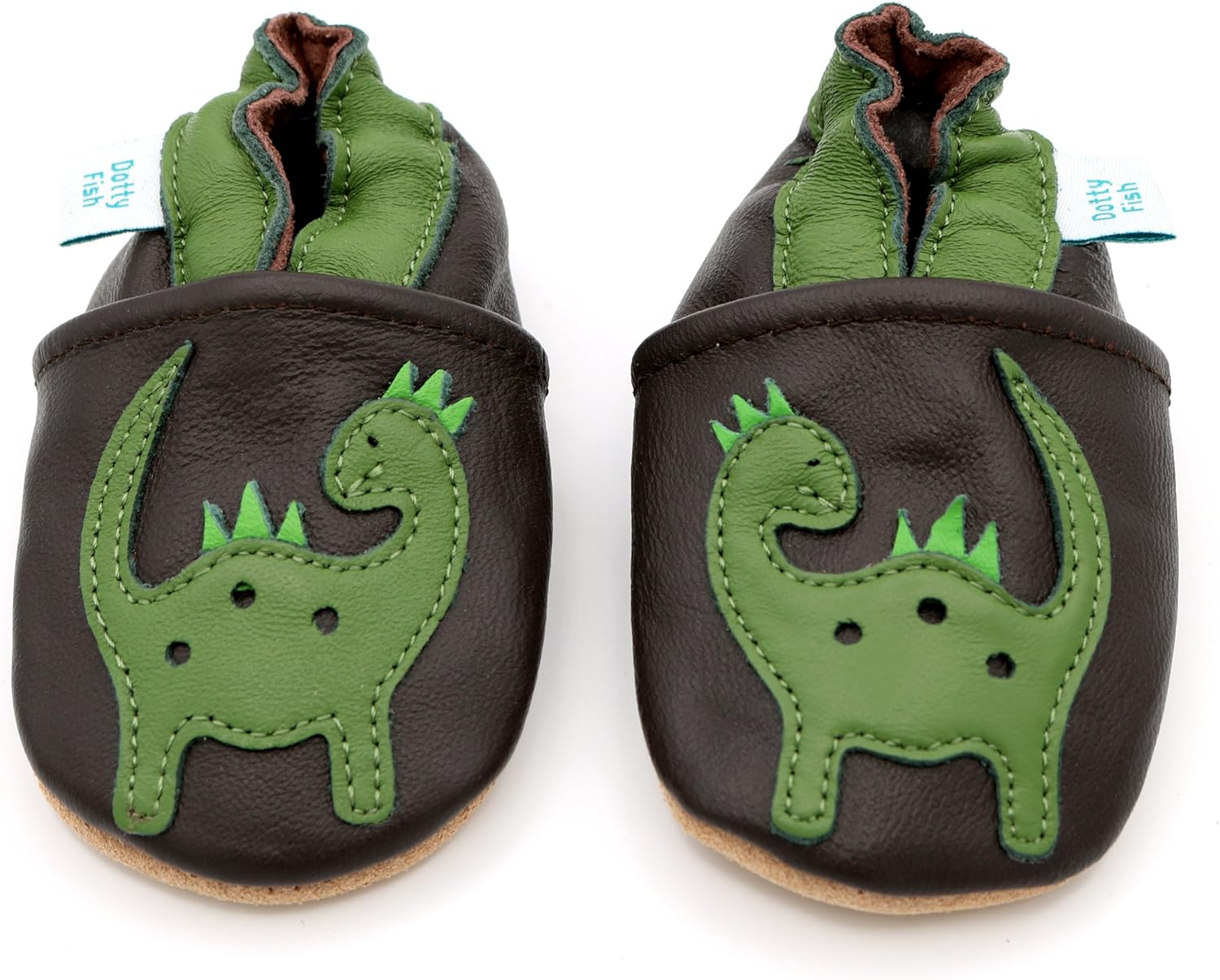 Dotty Fish Soft Leather Baby and Toddler Barefoot Shoes for Boys and Girls. Non-Slip Suede Soles. Animal Designs. 0-6 Months – 4-5 Years