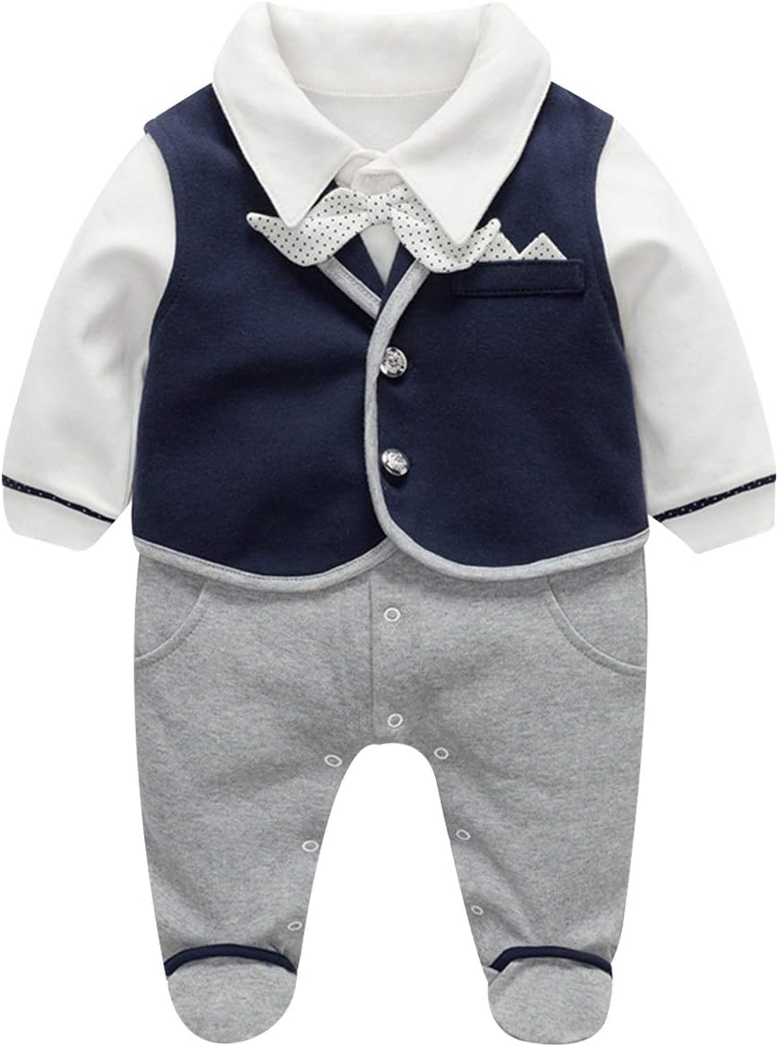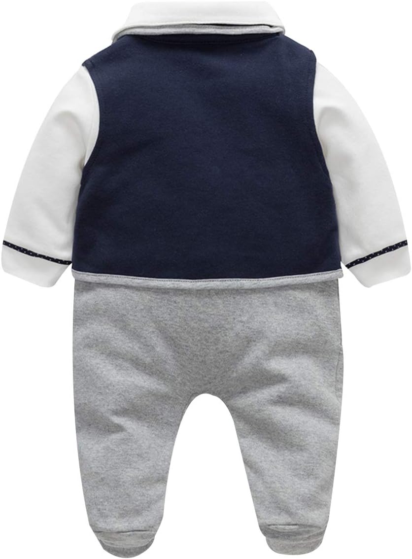 FamukaBaby Boys Romper One-Piece Suit Gentleman Jumpsuit Bow Tie Cotton Formal Outfits