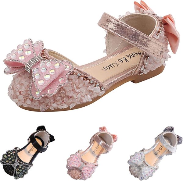 Fashion Spring and Summer Girls Sandals Dress Dance Show Princess Shoes Bowknot Ribbon Hook Loop White Toddler Shoes
