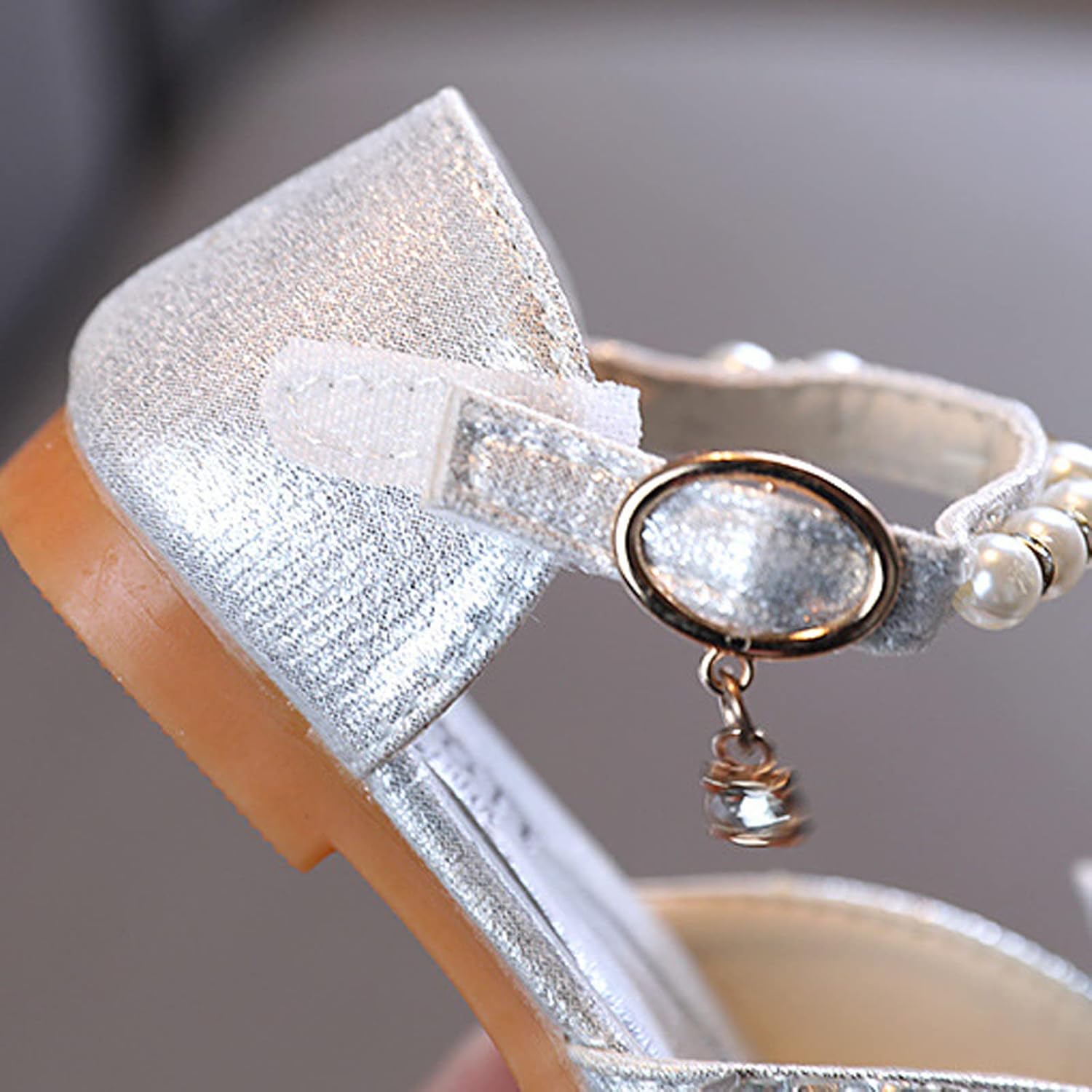 FGUUTYM Spring and Sandals Dress Performance Dance Shoes Mesh Rhinestone Pearl Buckle Sandals Toddler Boy, silver, 8.5 UK