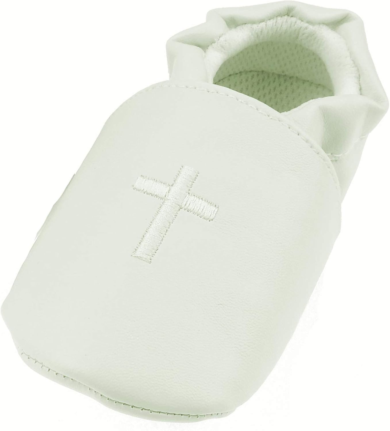 Cute Baby Boys Newborn Kids Infant Babies Leather Look Cross Dress Pram Formal Occasion Christening Baptism Slip on Pram Crib Soft Sole House Shoe Slipper Pre Walkers Flat Booties