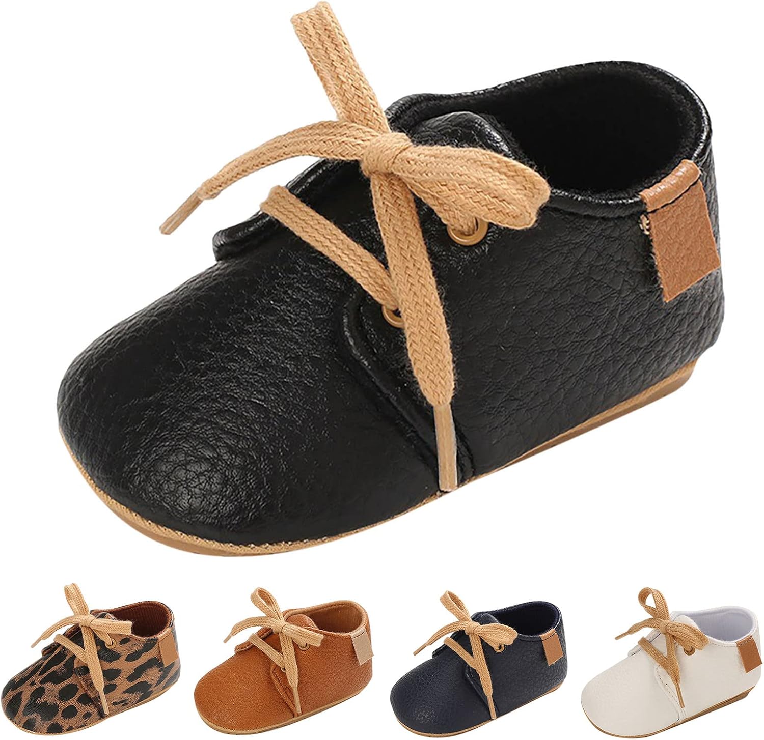 Infant Toddler PU Leather Soft Sole Baby Shoes Boys and Girls Non Slip Floor Casual Shoes Lightweight Lace Up Comfortable Solid Color Simple Baby Boy Girl