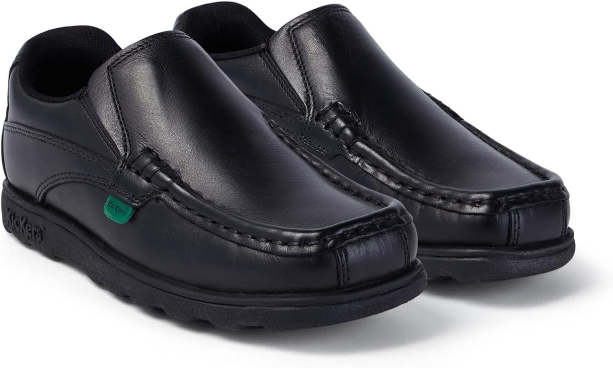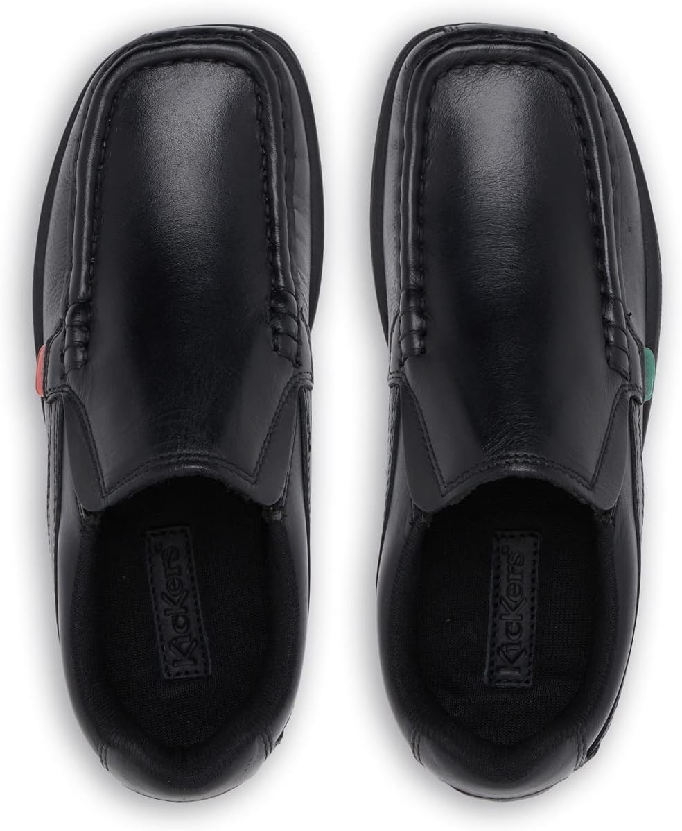Kickers Boy’s Fragma Slip on Moc Toe Comfortable Leather Shoes, Black