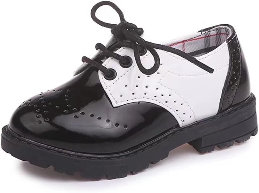 Kids Leather School Shoes Casual Oxford Flat Fashion Classic Girls Lace Up Brogue Shoes Comfortable Boys Uniform Dress Shoes