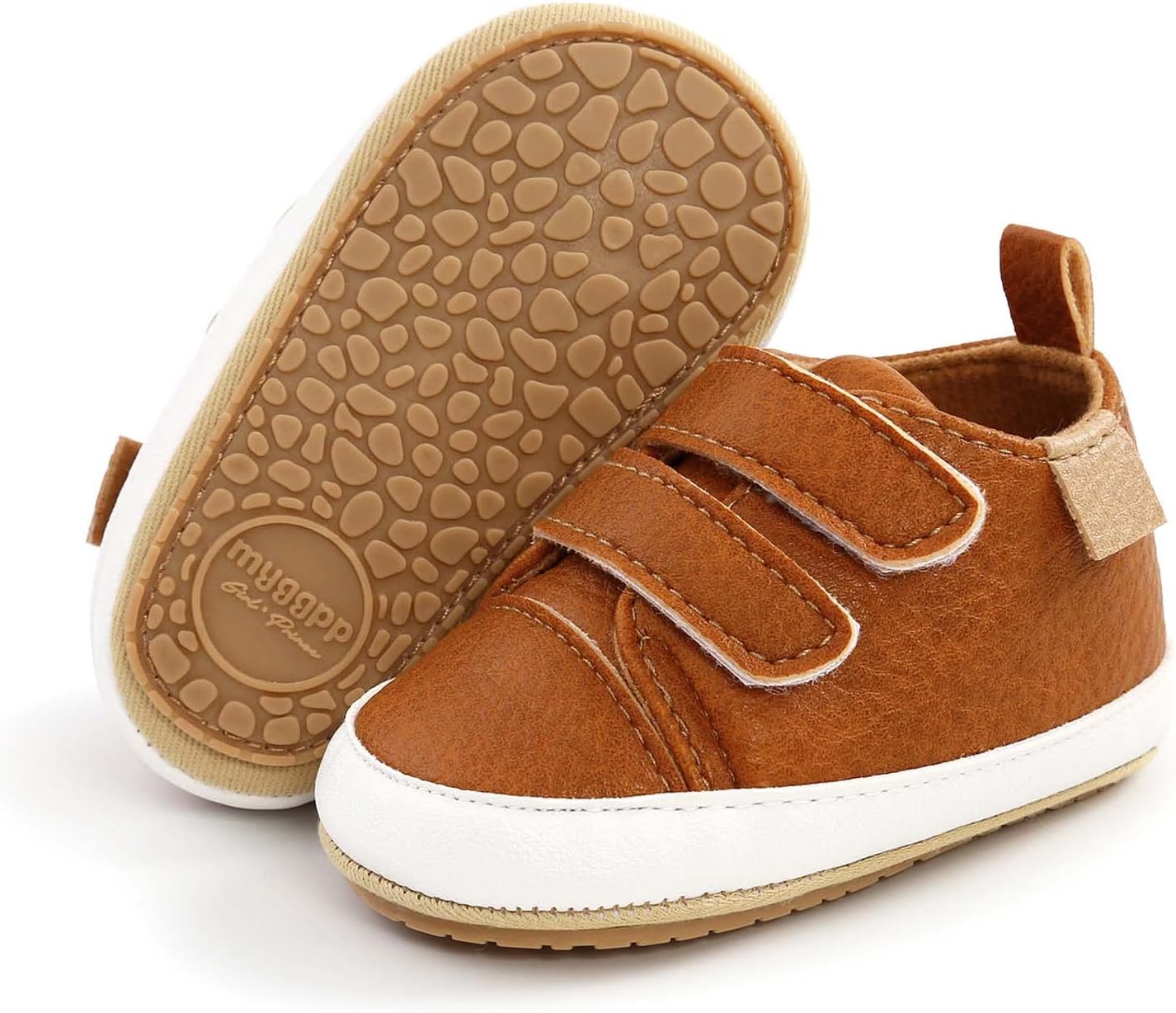 Kleoque Infant Baby Boys Girls Shoes Anti-Slip Oxford Loafer Flats Toddler Prewalker Soft Sole Crib First Walking Shoes Newborn Trainer High-Top Pu Leather Flats Sneakers Size 3-5
