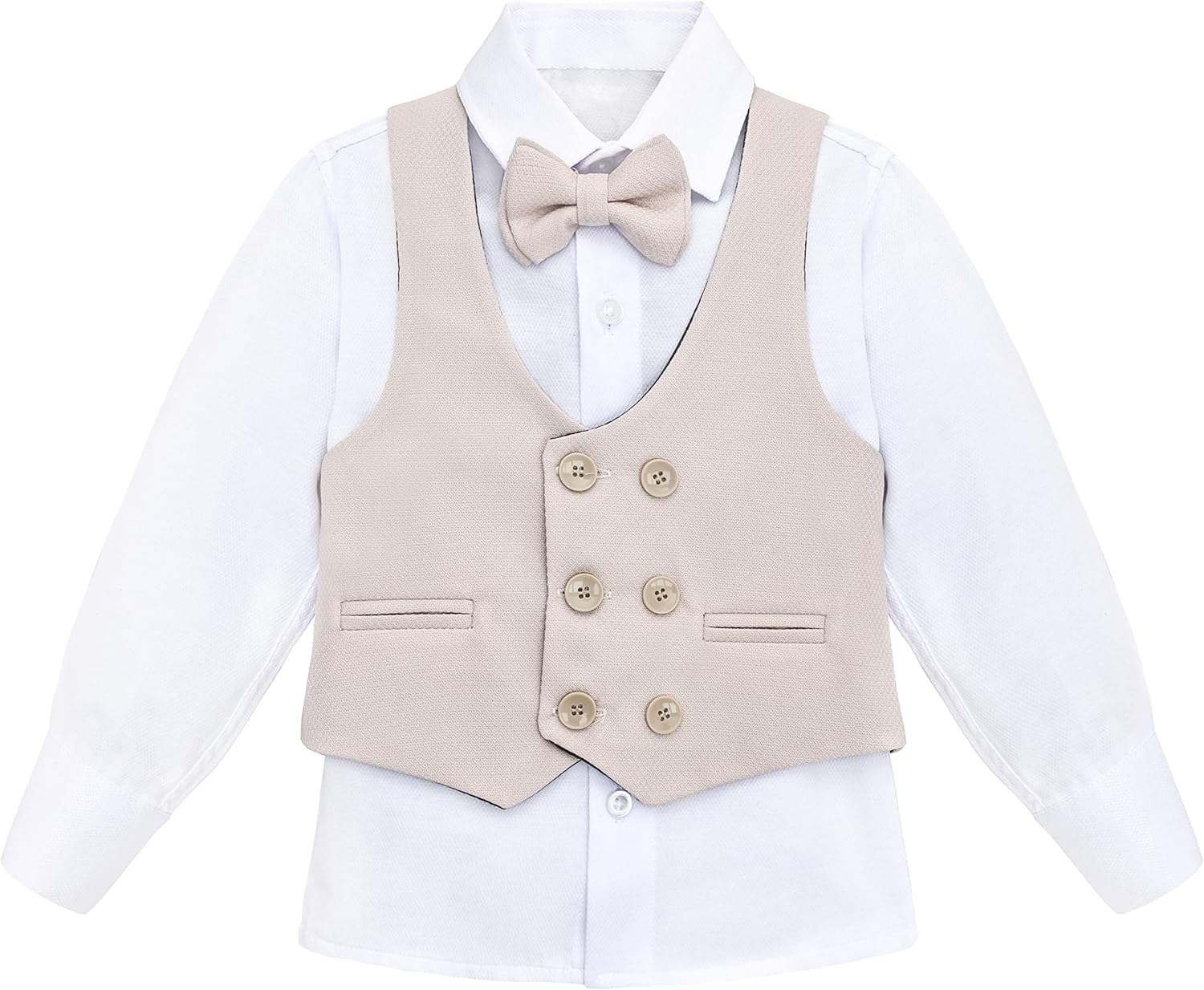 Lilax Toddler & Little Boys Suit Set, Formal Suit Vest, White Dress Shirt, Dress Pants and Bowtie 4 Piece Suit Set